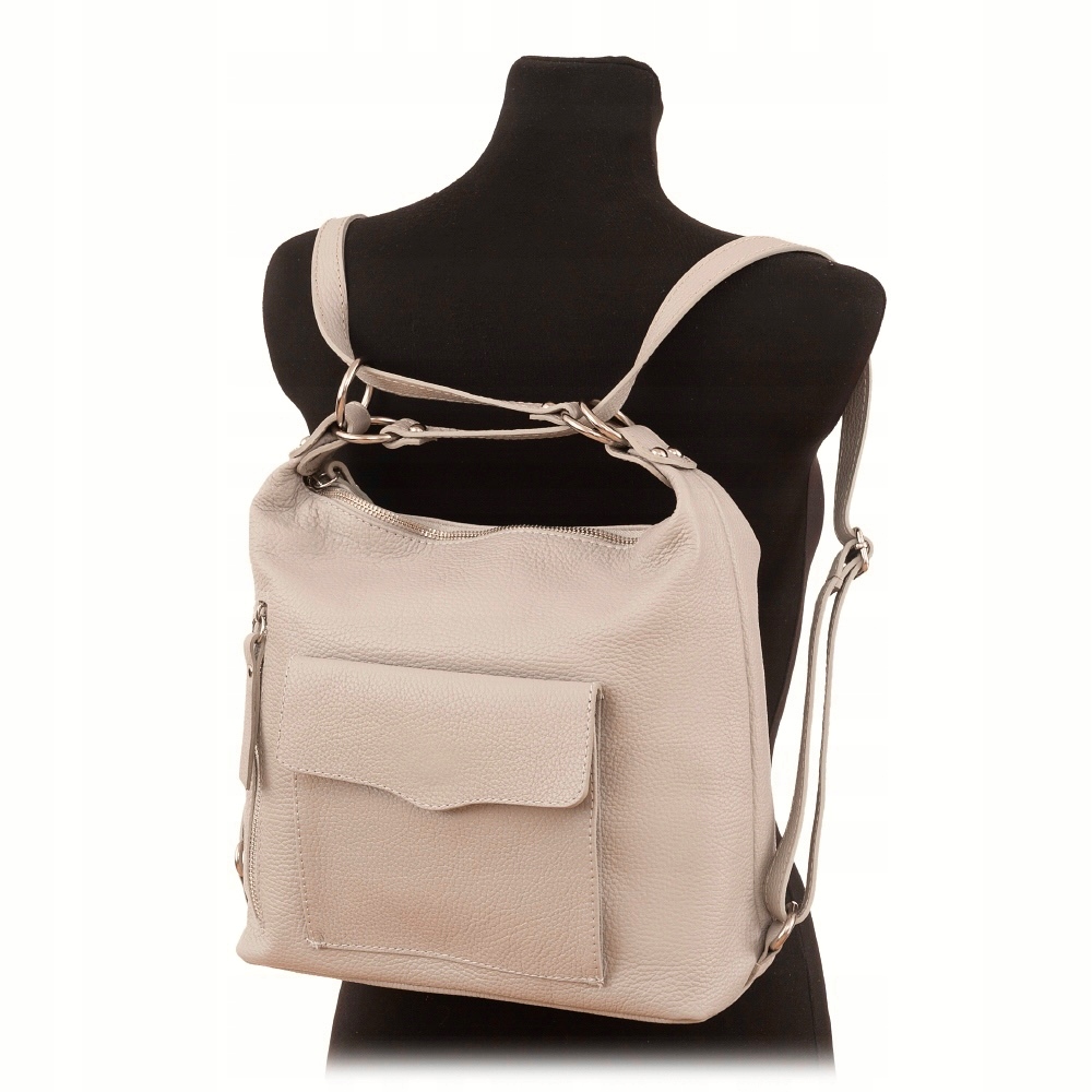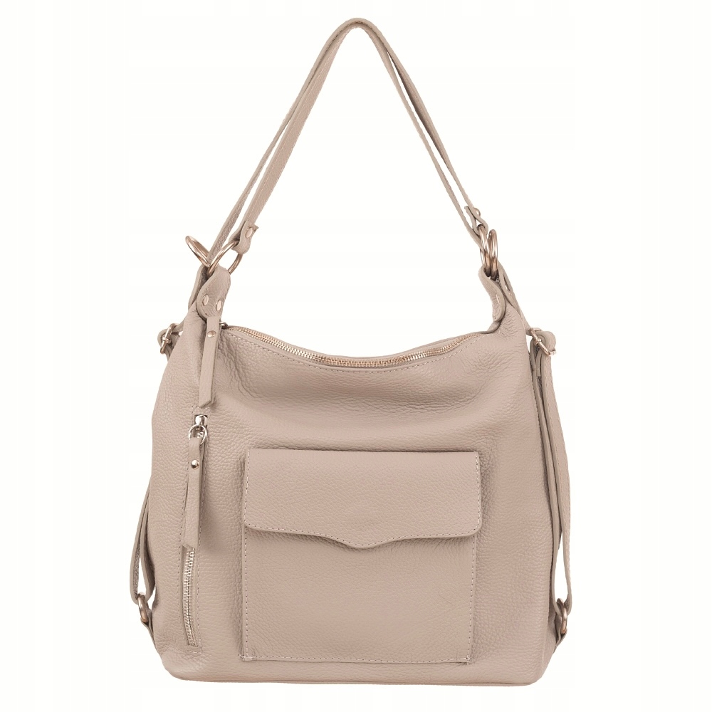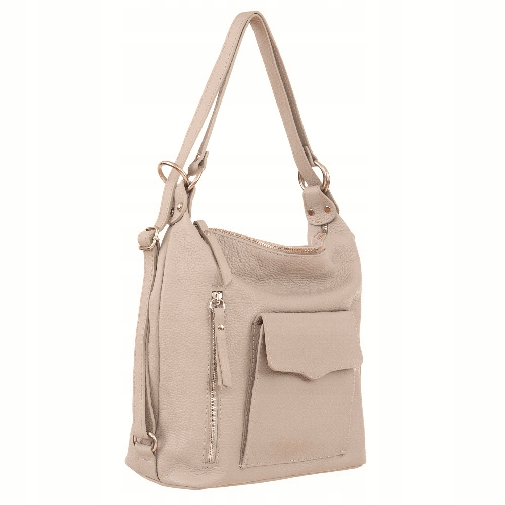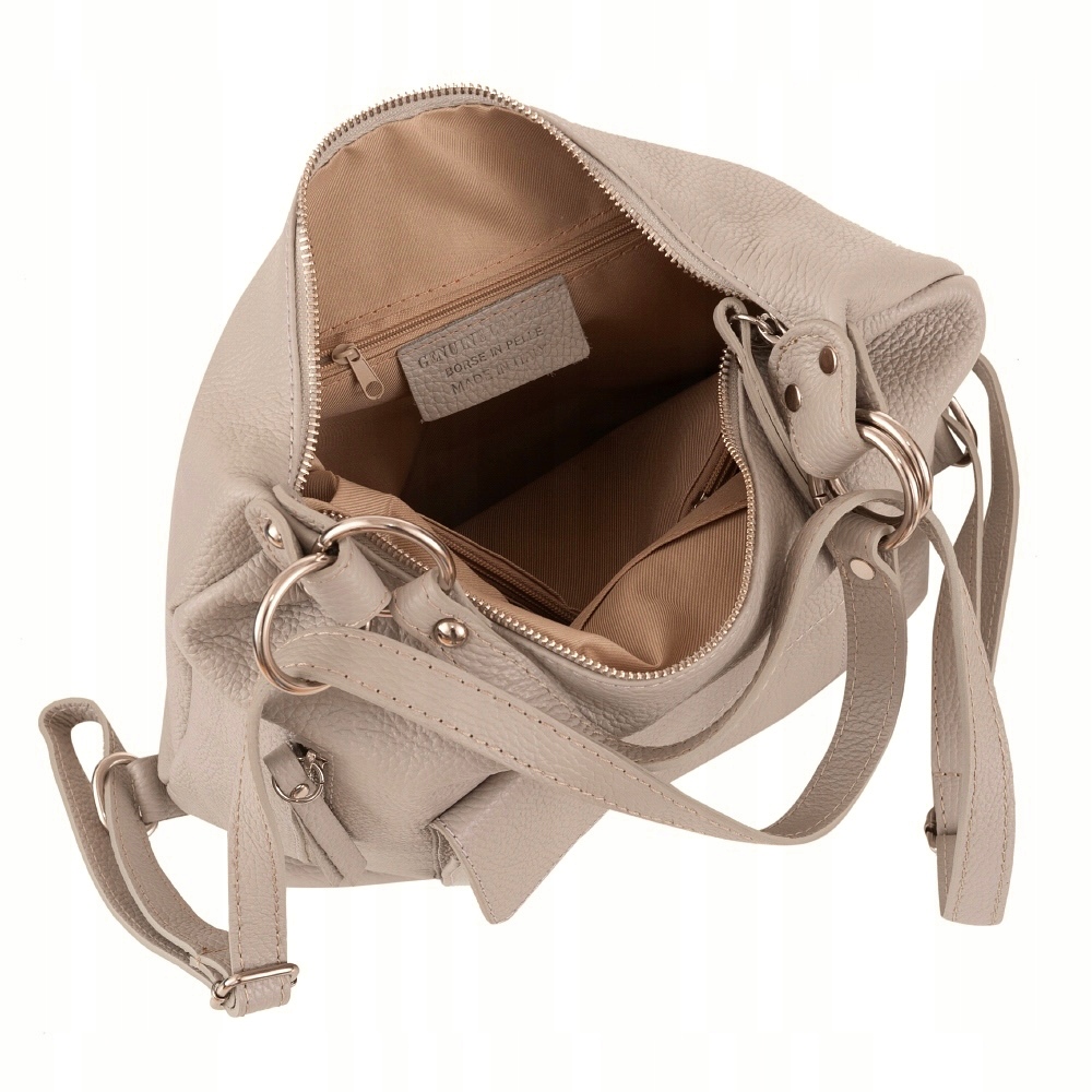 VERA PELLE Włoska cappuccino skórzana torebka worek wykonana z naturalnej skóry DOLARO.