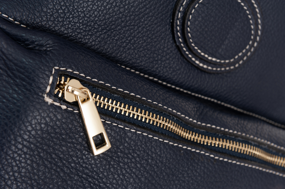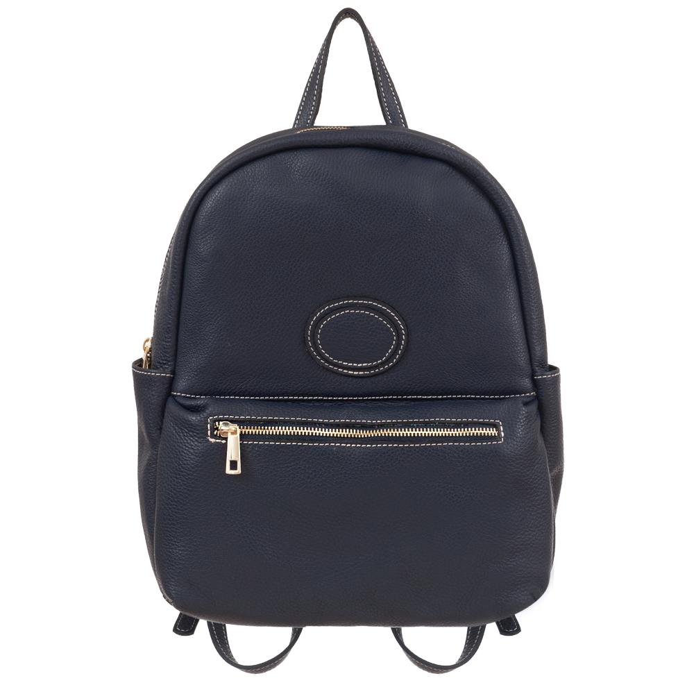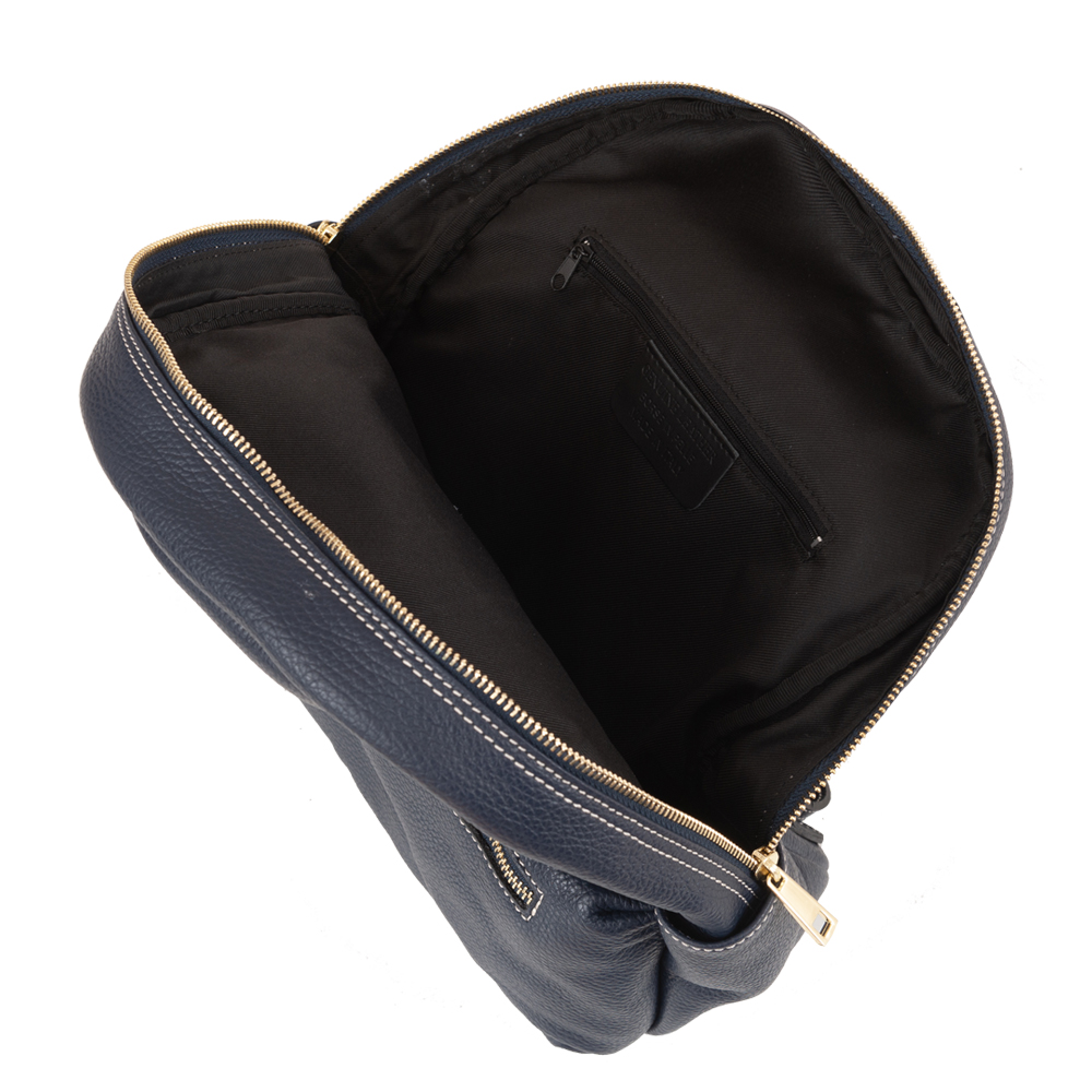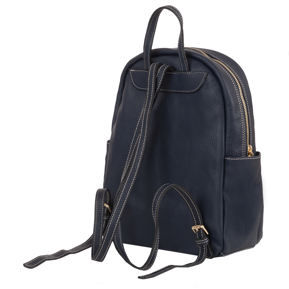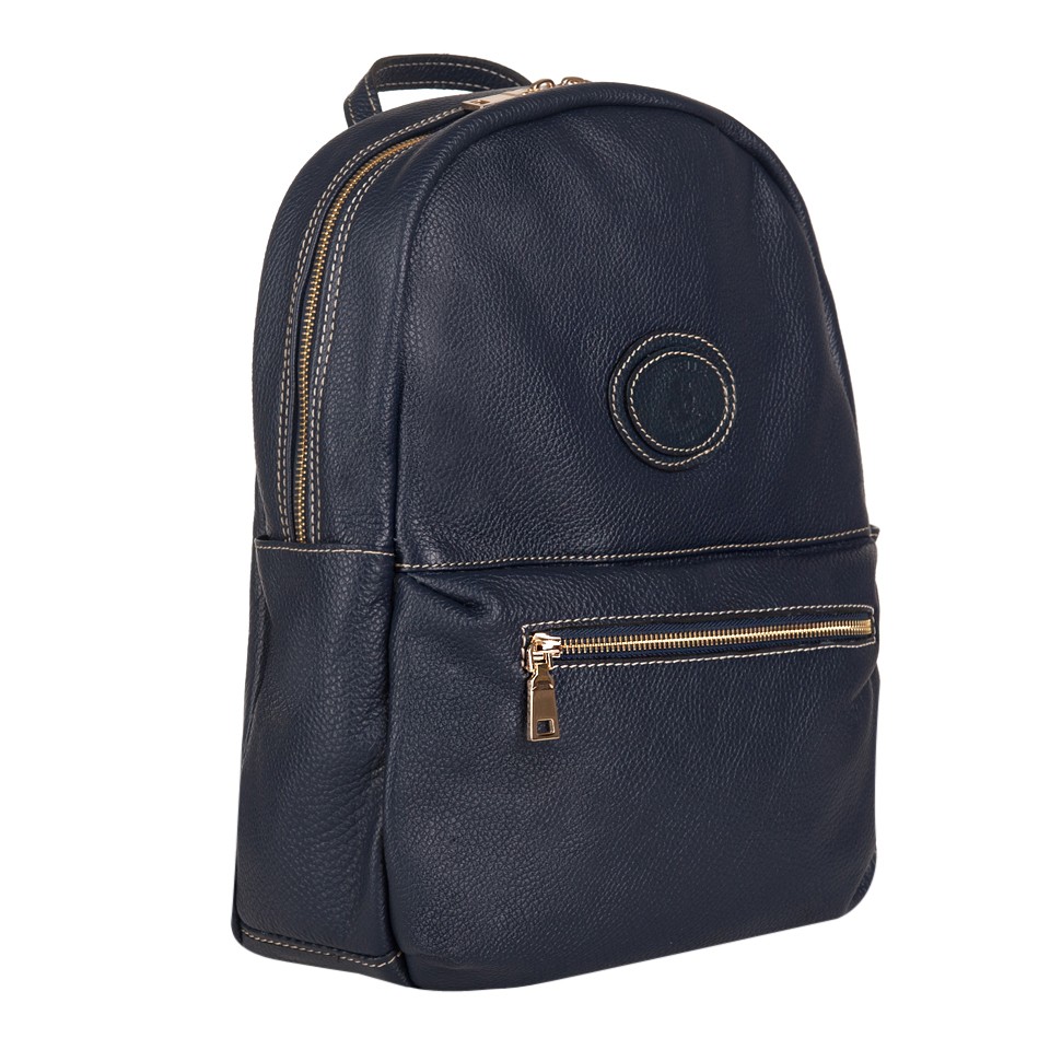 Włoski pojemny czarny skórzany PLECAK wykonany w całości z wysokogatunkowej naturalnej skóry licowej firmy Vera Pelle. Zamykany dookoła na podwójny zamek. Wewnątrz jedna kieszonka na zamek + kieszonka na telefon. Dodatkowo dwie kieszonki po bokach torebki + pojemna kieszeń na zamek z przodu. Wnętrze wykończone trwałą materiałową, czarną podszewką. Plecak od spodu został lekko usztywniony. Metalowe elementy wykończenia w kolorze złotym. Uszy z możliwością regulacji długości do max. 96 cm. Można nosić jako plecak lub w dłoni.