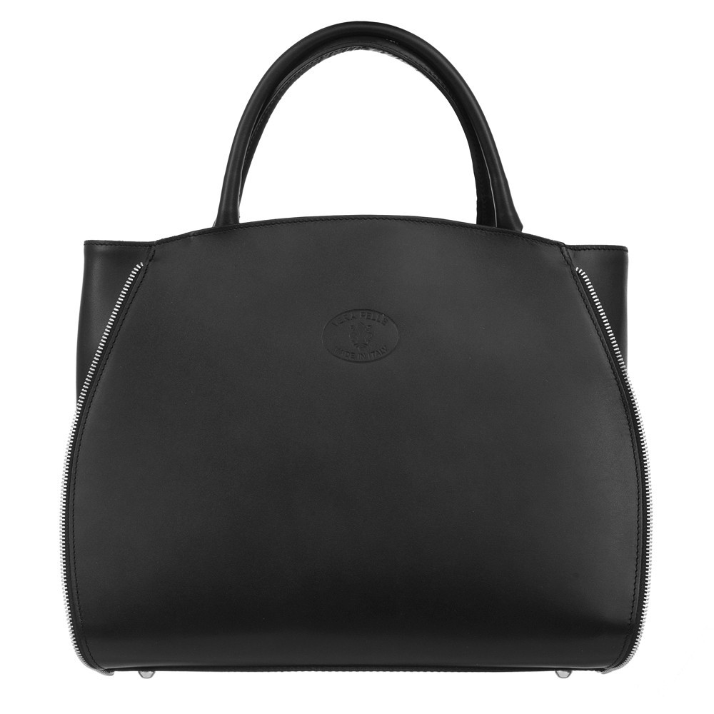 Włoska klasyczna skórzana torebka wykonana z wysokogatunkowej naturalnej gładkiej skóry licowej. Z przodu torebki wygrawerowane VERA PELLE - MADE IN ITALY. Zamykana na suwak. Torebka jednokomorowa. Wewnątrz jedna kieszonka na zamek + kieszonka na telefon. Wnętrze wykończone trwałą, ciemną podszewką. Torebka od spodu usztywniona oraz podbita ćwiekami. Elementy wykończenia w kolorze srebrnym. Dodatkowy pasek na ramię o długości 90 cm.