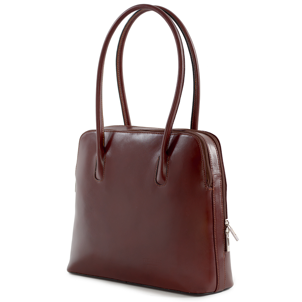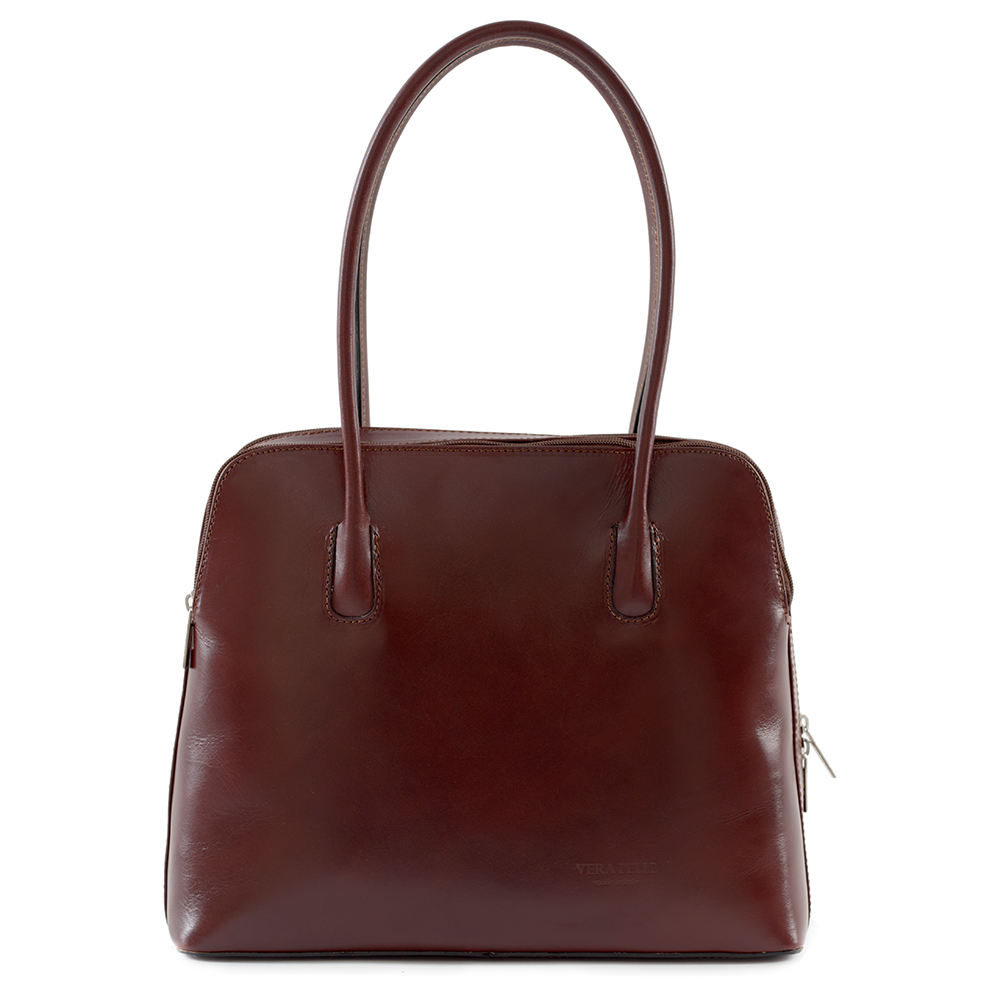 Włoska klasyczna skórzana torebka wykonana z wysokogatunkowej naturalnej gładkiej skóry licowej firmy Vera Pelle. Wygodny dostęp do środka. Torebka dwukomorowa, wewnątrz jedna kieszonka na zamek oraz jedna na telefon. Wnętrze wykończone trwałą podszewką dopasowaną kolorystycznie do skóry. Torebka od spodu usztywniona. Suwaki w kolorze srebrnym.