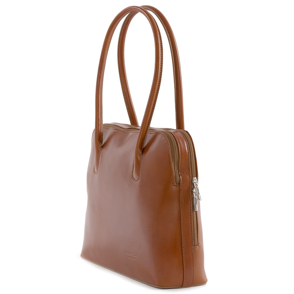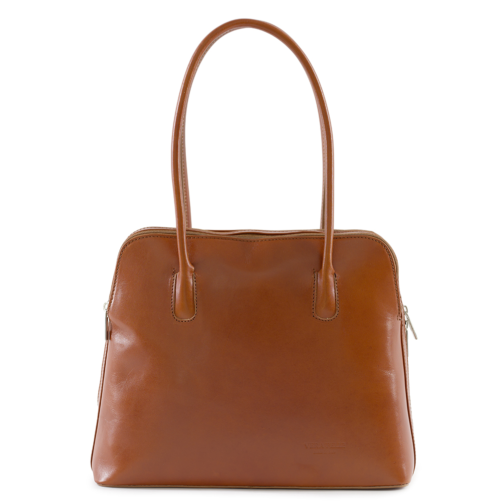 Włoska klasyczna skórzana torebka wykonana z wysokogatunkowej naturalnej gładkiej skóry licowej firmy Vera Pelle. Wygodny dostęp do środka. Torebka dwukomorowa, wewnątrz jedna kieszonka na zamek oraz jedna na telefon. Wnętrze wykończone trwałą podszewką dopasowaną kolorystycznie do skóry. Torebka od spodu usztywniona. Suwaki w kolorze srebrnym.
