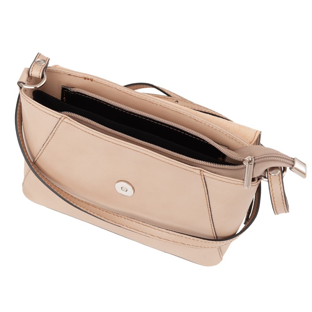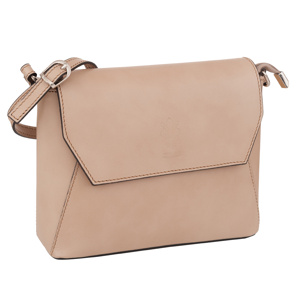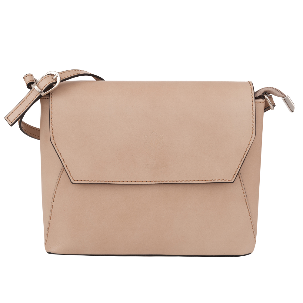 Włoska klasyczna skórzana torebka listonoszka wykonana z wysokogatunkowej naturalnej gładkiej skóry licowej firmy Vera Pelle. Zamykana z góry na suwak + klapa na magnes. Spód torebki usztywniony. Torebka jednokomorowa, wewnątrz jedna kieszonka na zamek oraz jedna na telefon. Wnętrze wykończone trwałą podszewką. Z tyłu kieszonka na suwak. Długi, regulowany pasek umożliwia wygodne noszenie na ramieniu.