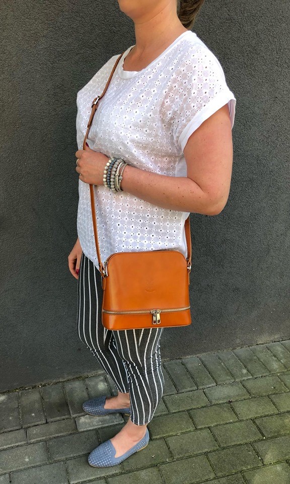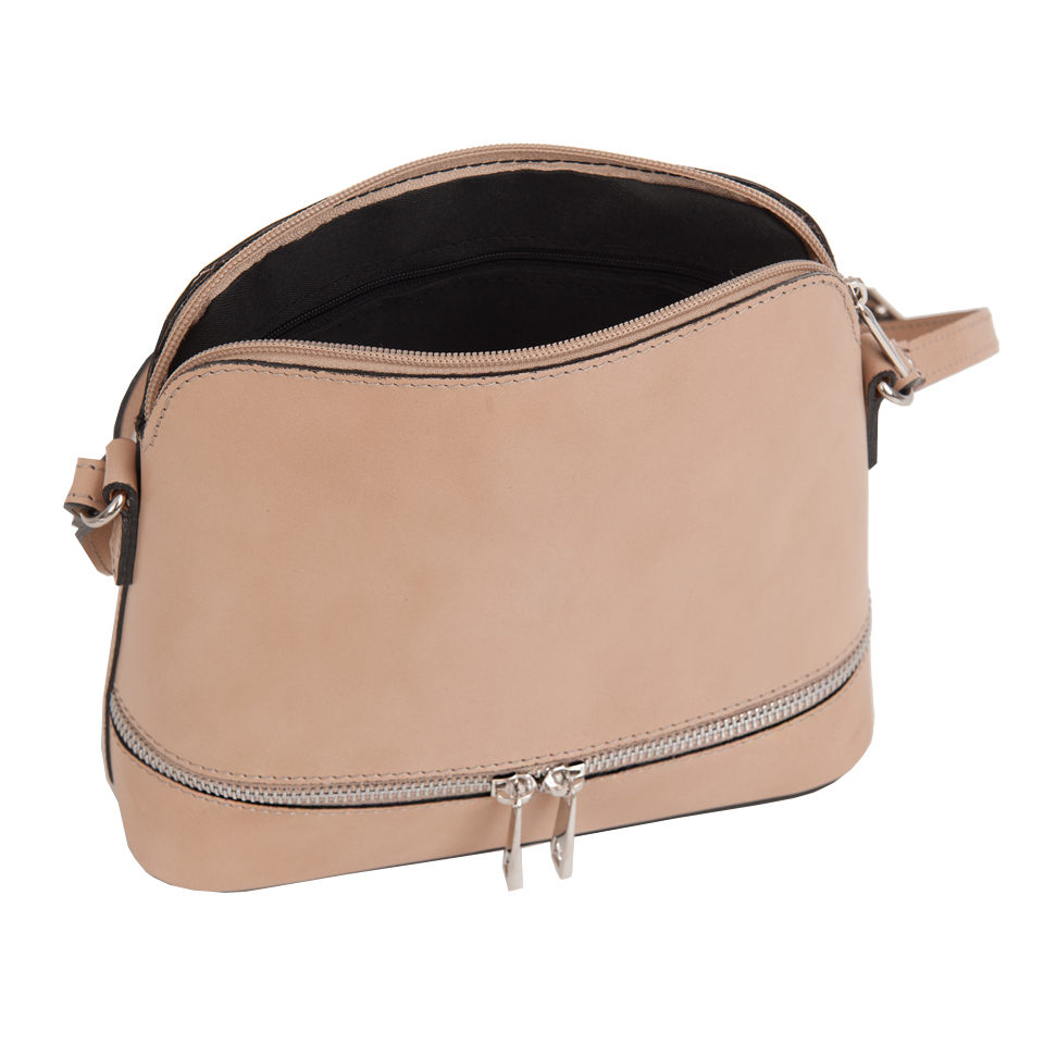Vera Pelle - włoska zgrabna skórzana listonoszka wykonana z wysokogatunkowej naturalnej gładkiej skóry licowej. Główna komora zamykana na zamek. Spód torebki usztywniony. Torebka jednokomorowa, wewnątrz kieszonka na zamek + kieszonka na telefon. Wnętrze wykończone trwałą podszewką. Z tyłu kieszonka na suwak. Długi regulowany pasek umożliwia wygodne noszenie na ramieniu lub przez ramię.
