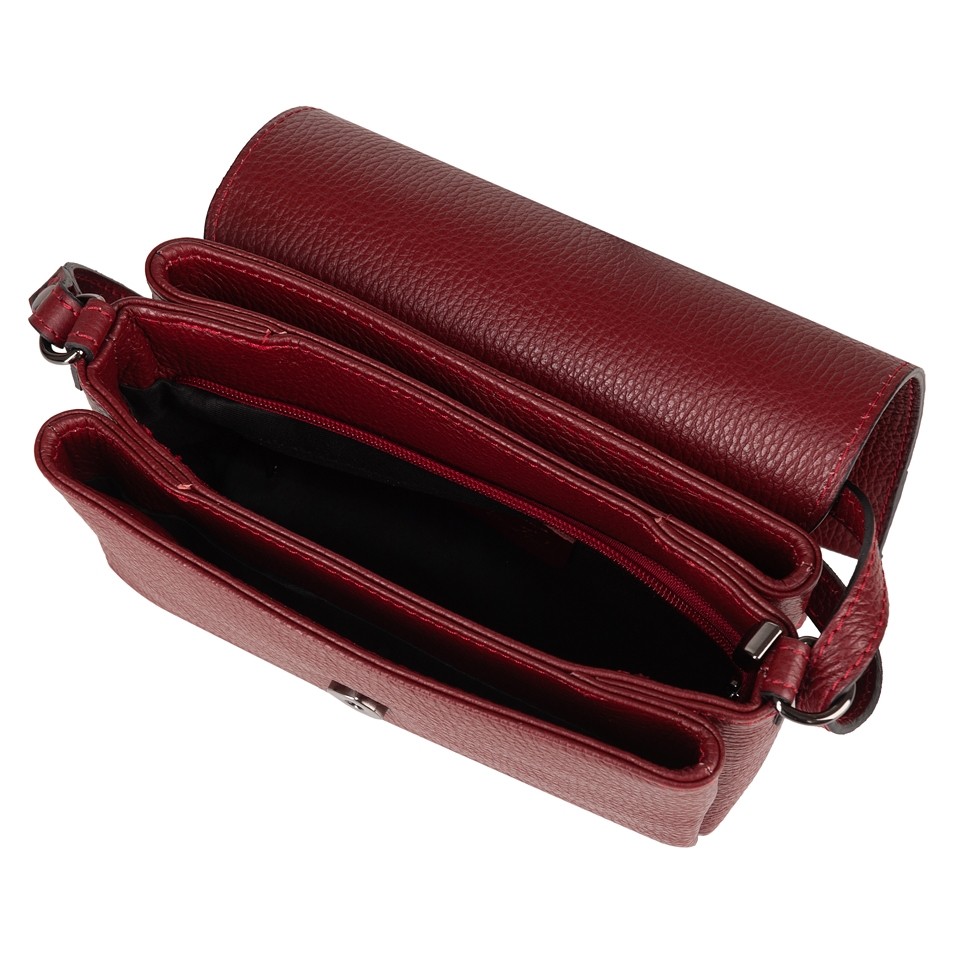 Włoska skórzana torebka listonoszka wykonana z wysokogatunkowej naturalnej skóry dolaro firmy VERA PELLE. Zamykana na klapę z magnesem. Torebka trzykomorowa, środkowa komora na zamek na całej szerokości torebki + w środku kieszonka na zamek, komory po bokach na magnes. Metalowe elementy wykończenia w kolorze inox. Skórzany pasek z możliwością regulacji długości do max.162 cm.