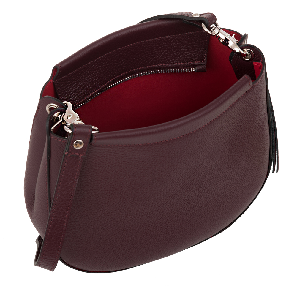 Włoska skórzana torebka listonoszka wykonana z wysokogatunkowej naturalne skóry firmy VERA PELLE. Zamykana z góry na suwak. Torebka jednokomorowa, wewnątrz jedna kieszonka. Elementy wykończenia w kolorze srebrnym. Skórzany pasek z możliwością regulacji długości do 122 cm oraz całkowitego odpięcia, dzięki czemu torebkę można nosić jako elegancką kopertówkę. Suwak zakończony modnym pękiem frędzli.