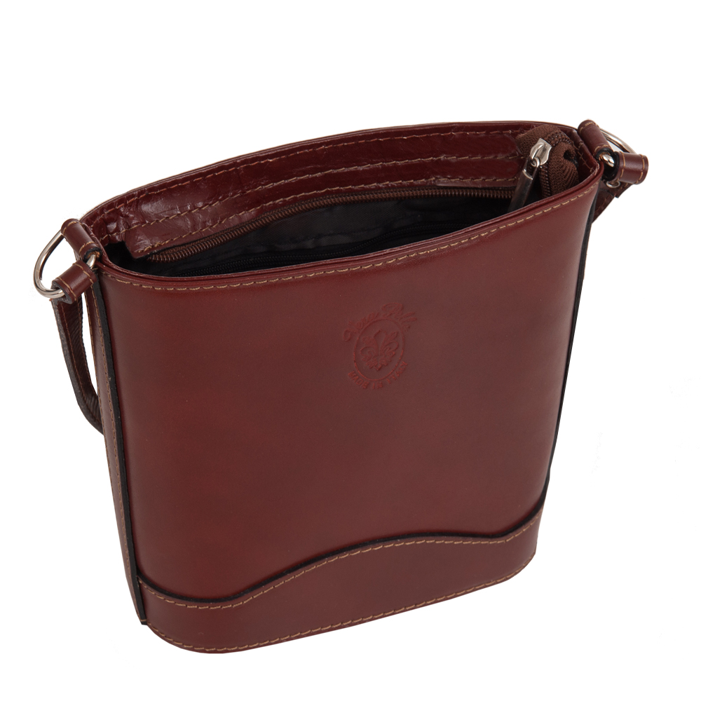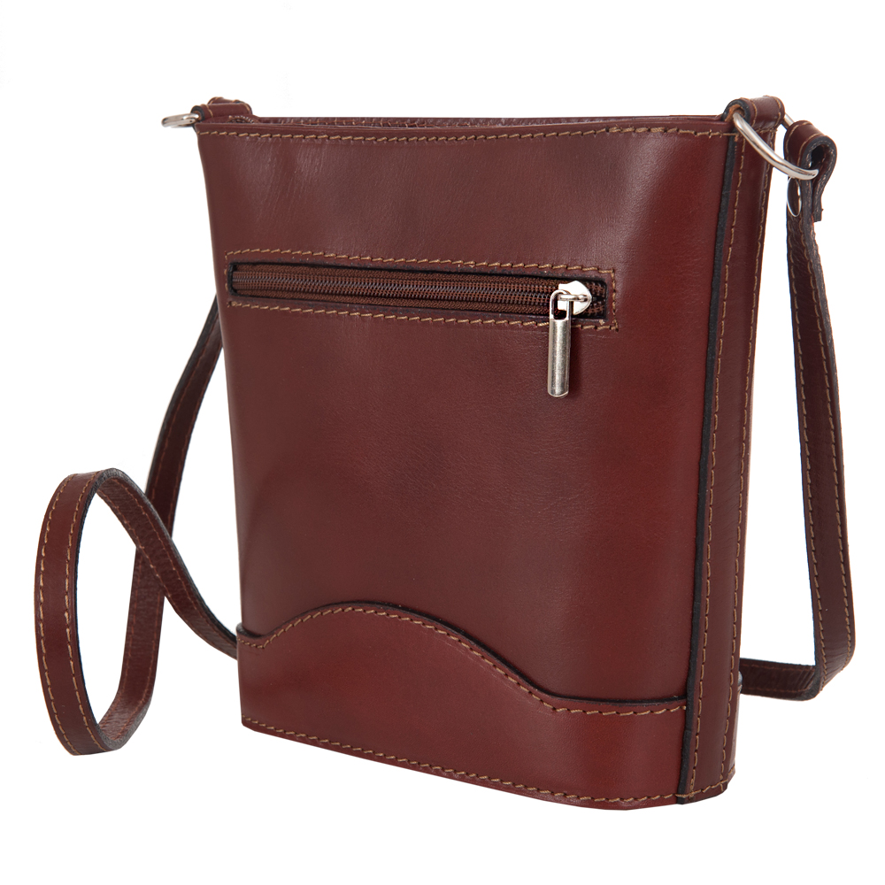 Włoska skórzana listonoszka wykonana z wysokogatunkowej naturalnej gładkiej skóry licowej firmy Pelle. Zamykana z góry na suwak. Spód torebki usztywniony. Torebka jednokomorowa, wewnątrz jedna kieszonka na zamek. Wnętrze wykończone trwałą podszewką. Z tyłu kieszonka na suwak. Długi, regulowany pasek umożliwia wygodne noszenie na ramieniu.