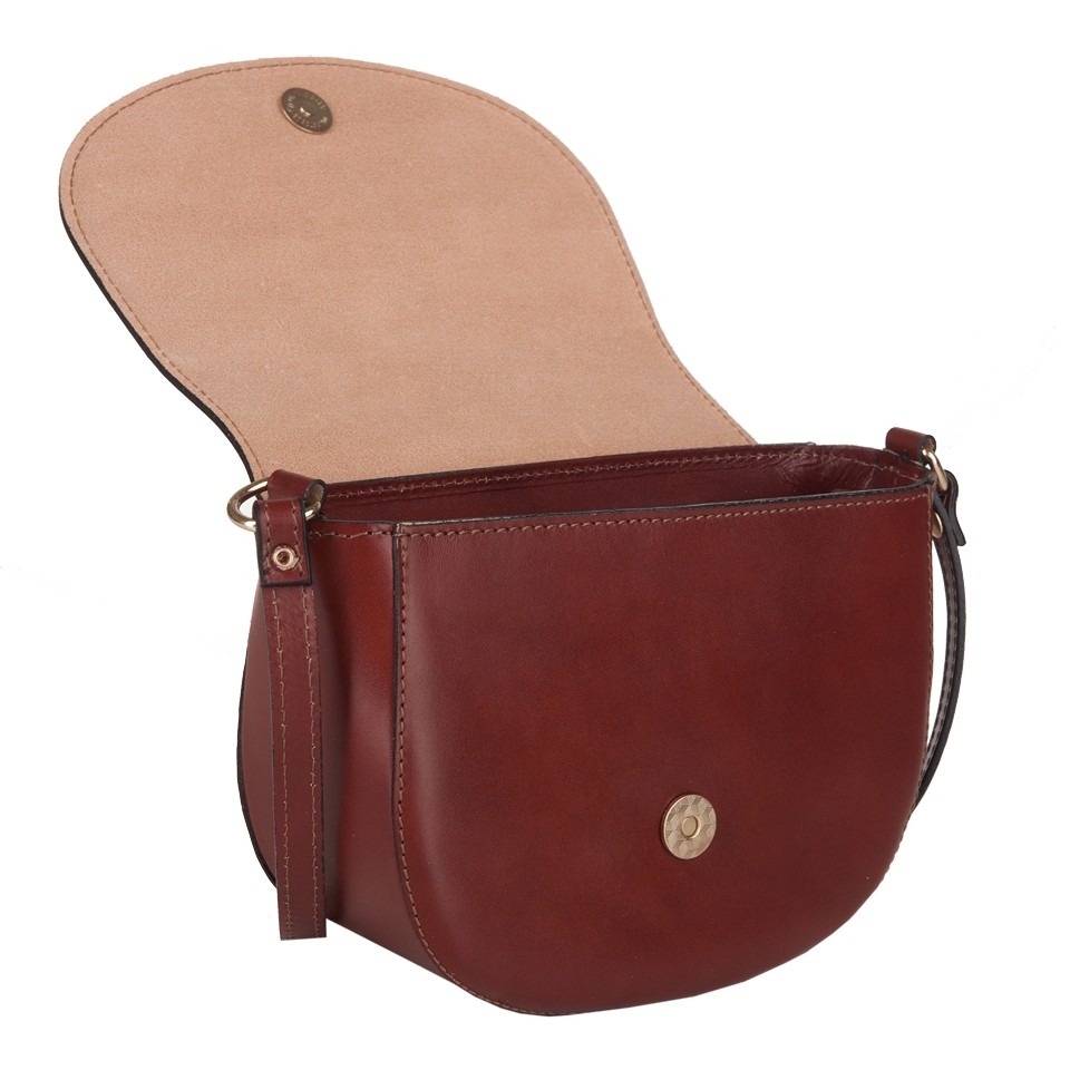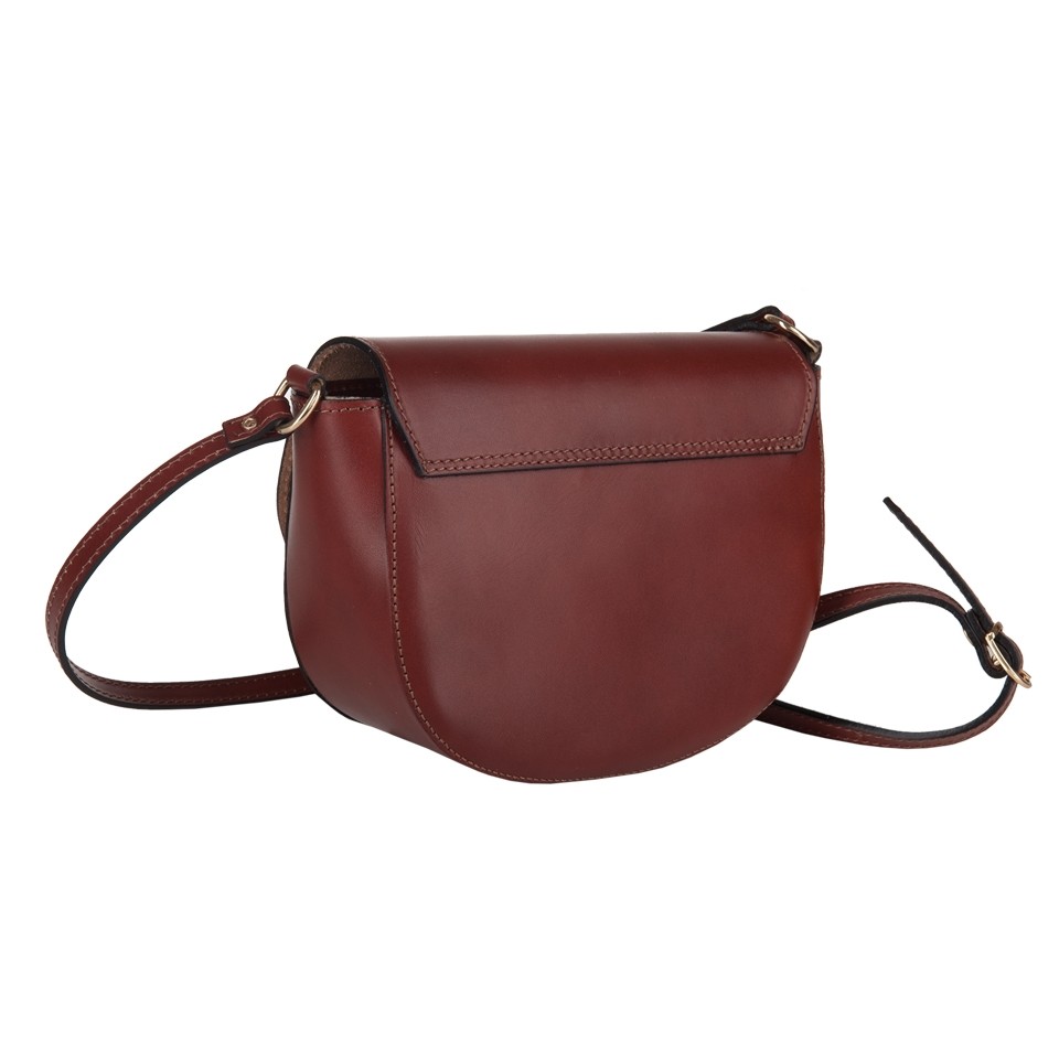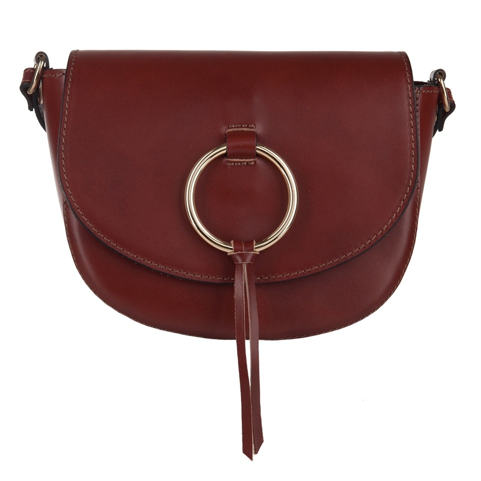 Vera Pelle - Włoska skórzana listonoszka torebka wykonana z wysokogatunkowej naturalnej gładkiej skóry licowej. Zamykana na klapę z magnesem + zamek pod klapą na całej szerokośći. Torebka jednokomorowa, wewnątrz jedna kieszonka na zamek. Wnętrze wykończone trwałą, czarną materiałową podszewką. Z przodu ozdobne kółeczko. Długi, regulowany pasek umożliwia wygodne noszenie na ramieniu. Elementy metalowe w kolorze złotym.