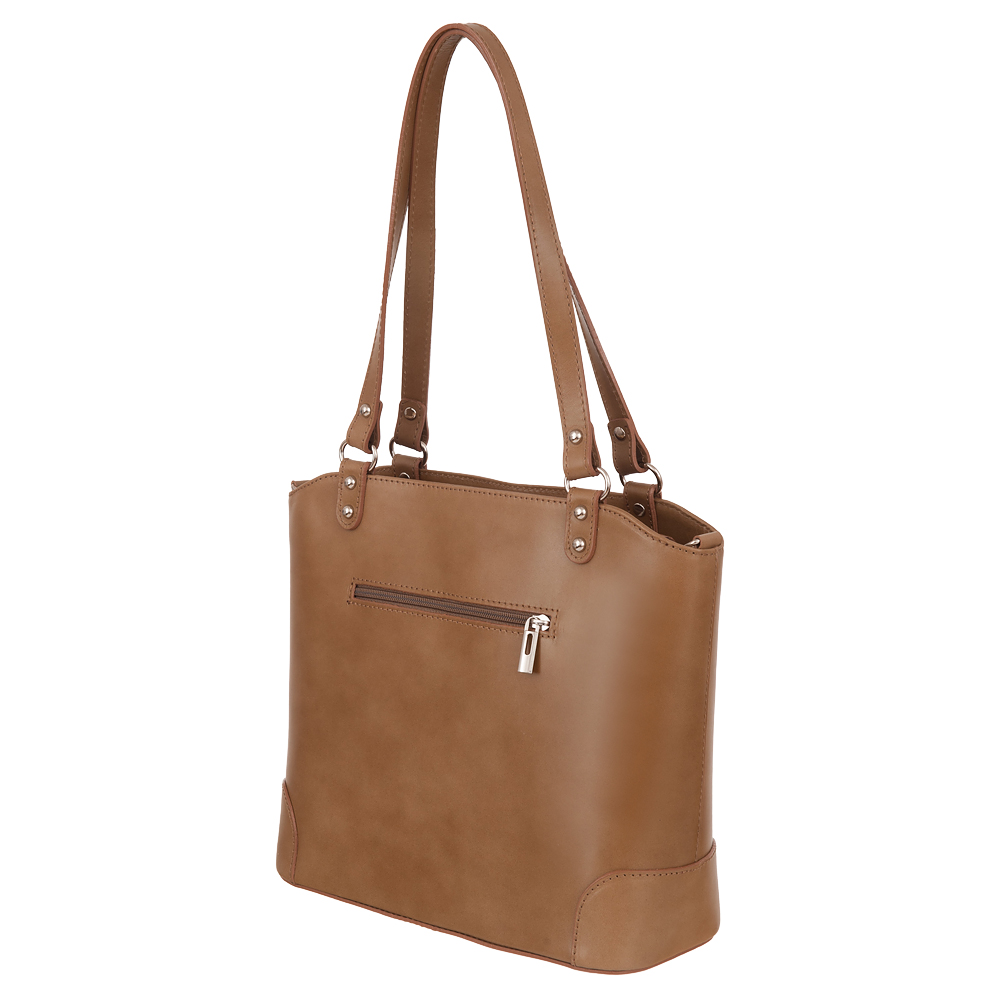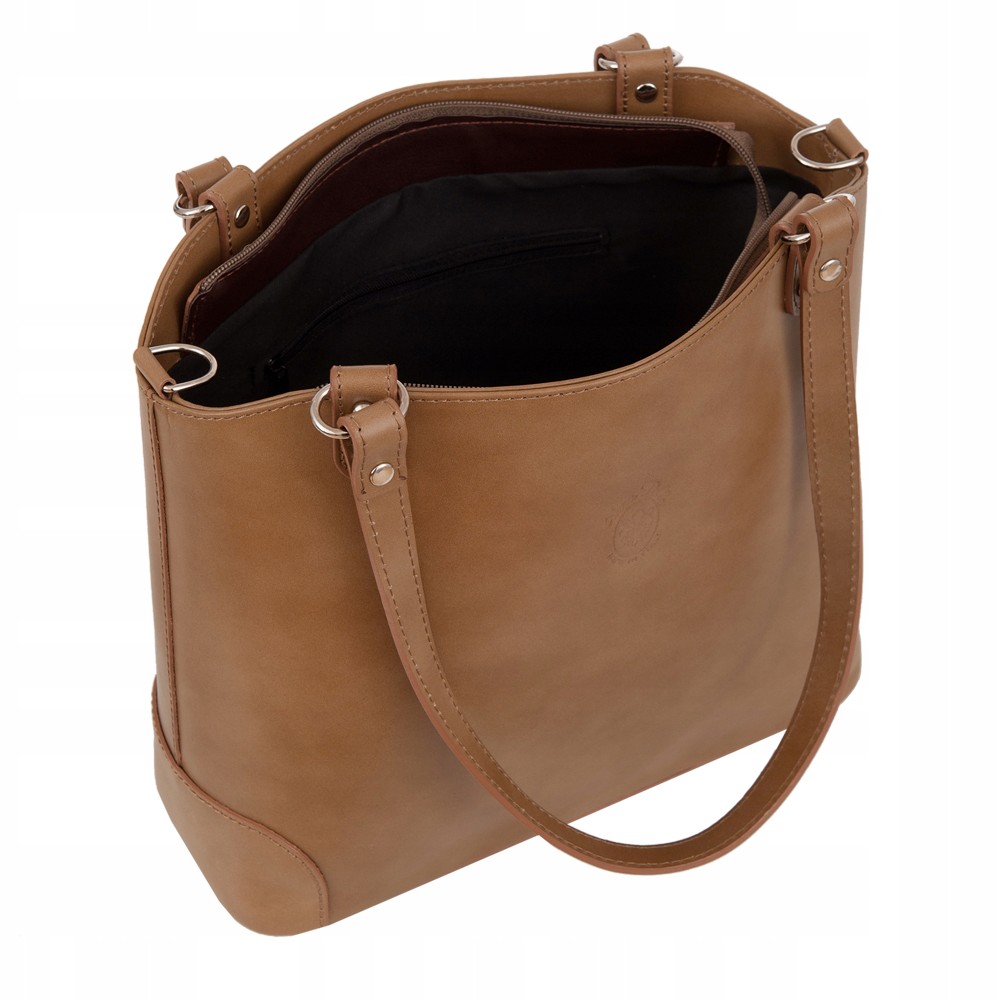 VERA PELLE włoska modna skórzana A4 torebka wykonana z wysokogatunkowej naturalnej skóry licowej. Wygodny dostęp do środka. Torebka jednokomorowa, od góry zamykana na suwak. Wewnątrz kieszonka na telefon + kieszonka na zamek. Torebka od środka wykończona porządną, czarną materiałową podszewką. Elementy metalowe wykończenia w kolorze srebrnym. Z tyłu kieszeń na suwak. Torebkę można swobodnie nosić na ramieniu. Dno usztywnione i podbite nóżkami, aby nie niszczył się spód. Dodatkowy długi pasek o długości 98 cm w komplecie.