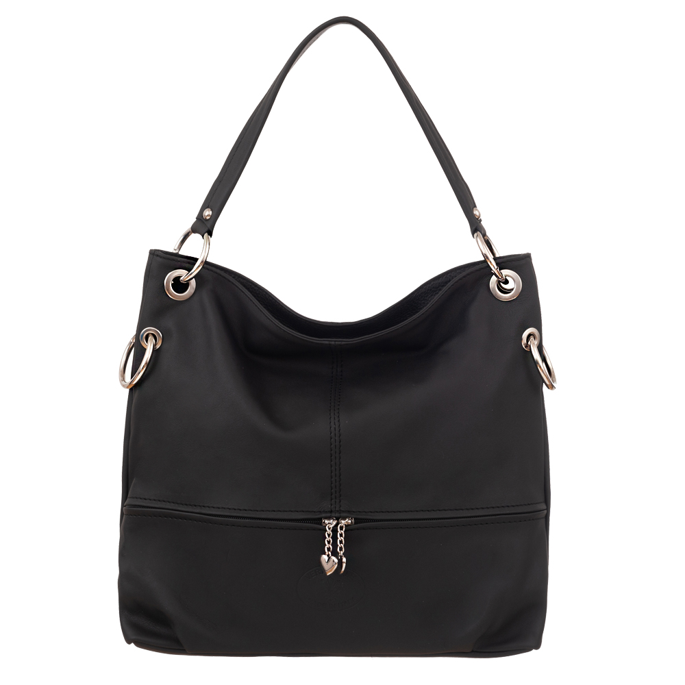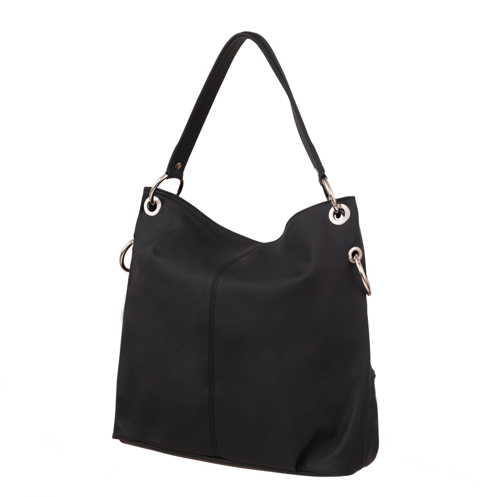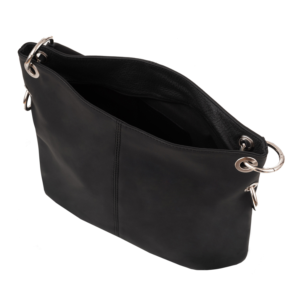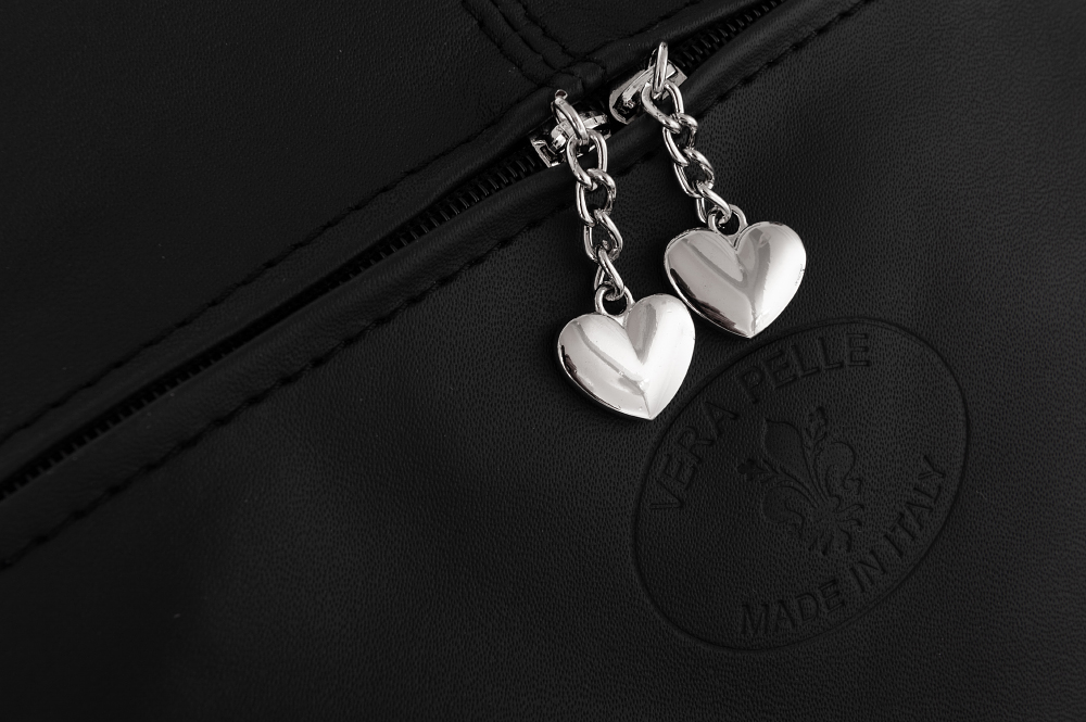 Vera Pelle - Włoska skórzana torebka wykonana z miękkiej skóry naturalnej cielęcej. Zamykana z góry na zamek na całej szerokości. Torebka dwukomorowa przedzielona dużą kieszenią na suwak. Wewnątrz jedna kieszonka na zamek oraz jedna na telefon. Dodatkowo z przodu torebki szeroka kieszeń na suwaki. Wnętrze wykończone trwałą podszewką dopasowną pod kolor skóry. Dodatkowy pasek z możliwością regulacji długości od 50 cm do 100 cm.