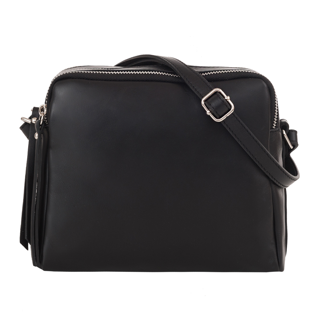 Vera Pelle - Włoska modna pojemna skórzana torebka listonoszka wykonana z wysokogatunkowej miękkiej naturalnej skóry cielęcej. Zamykana z góry na zamek na całej szerokości. Torebka trzykomorowa. Wewnątrz w środkowej komorze jedna kieszonka na zamek oraz jedna na telefon. Wnętrze wykończone trwałą, czarną materiałową podszewką. Pasek z możliwością regulacji długości 67-140 cm.