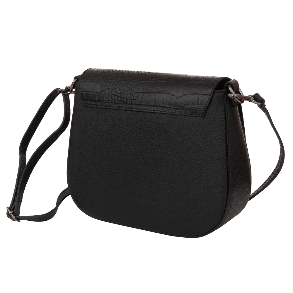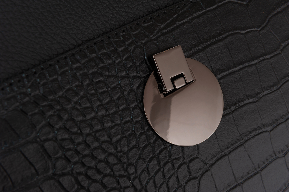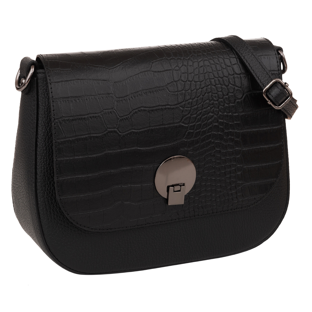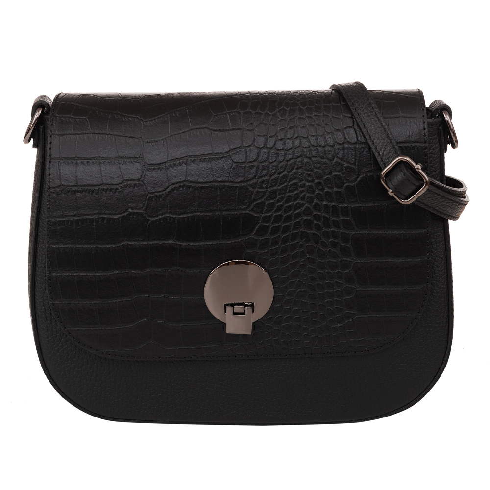 Hit sezonu! Włoska elegancka, modna skórzana torebka wykonana z wysokogatunkowej naturalnej skóry z fakturą łuski krokodyla łączonej ze skórą dolaro odporną na zarysowania firmy VERA PELLE . Torebka w stylu miejskim. Zamykana z góry na klapę + zamek na całej szerokości pod klapą. Torebka jednokomorowa, wewnątrz jedna kieszonka na zamek. Elementy wykończenia w kolorze srebrnym - inox. W komplecie 2 paski: krótki o dł. 50 cm i długi regulowany do max. 130 cm