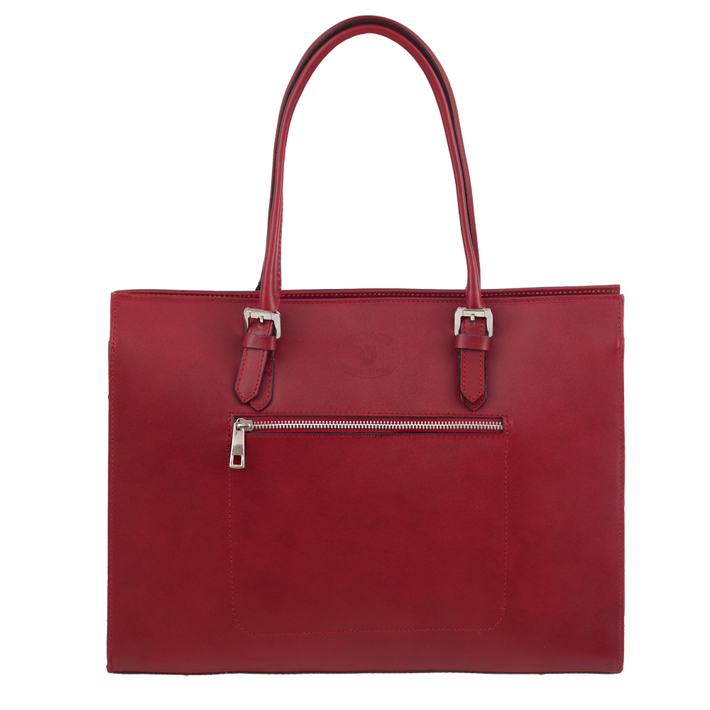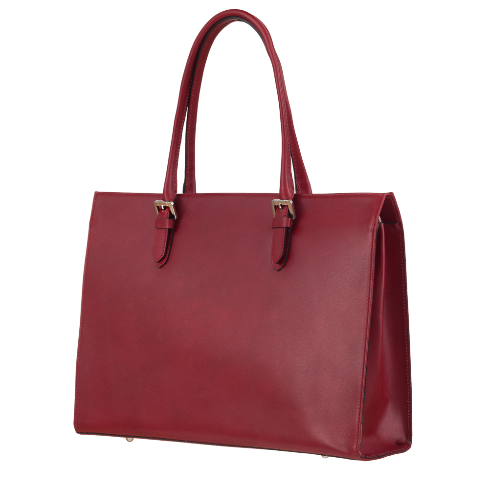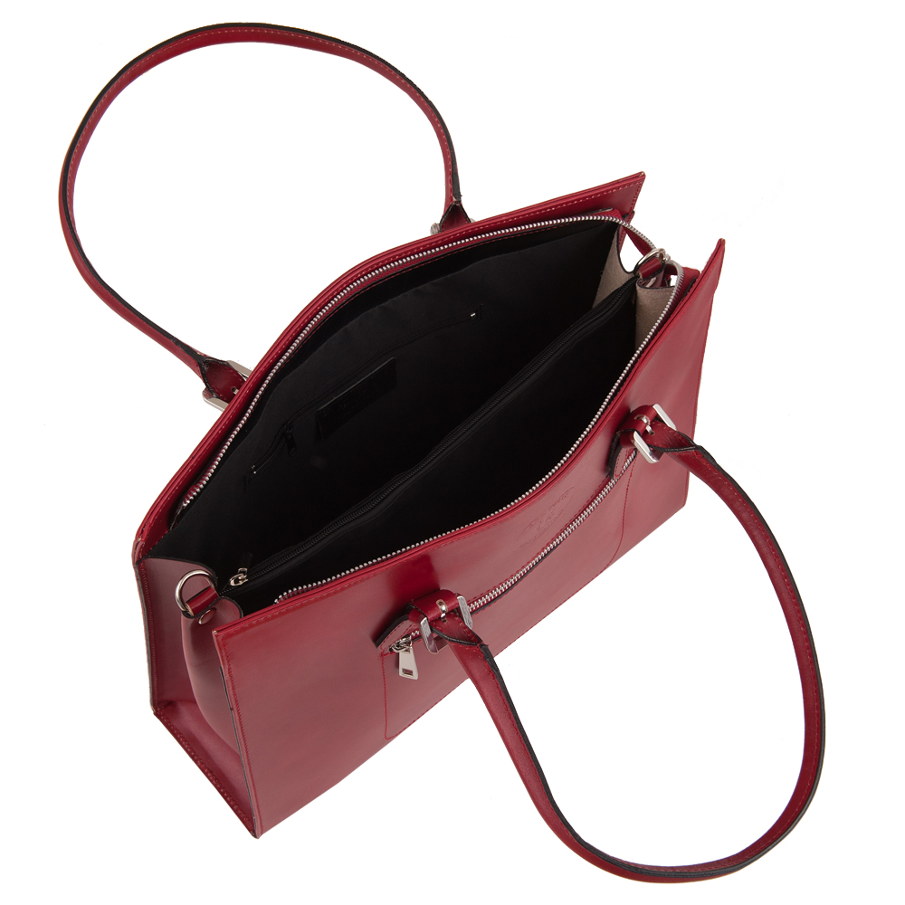 Włoska klasyczna skórzana A4 torebka wykonana z wysokogatunkowej naturalnej gładkiej skóry licowej. Zamykana od góry na zamek na całej szerokości. Torebka dwukomorowa przedzieloną dużą kieszenią na suwak. Wewnątrz dodatkowo jedna kieszonka na zamek, jedna na telefon + dodatkowa kieszonka. Wnętrze wykończone trwałą, ciemną materiałową podszewką. Dodatkowo z przodu torebki kieszonka na zamek. Torebka od spodu usztywniona oraz podbita nóżkami chroniącymi ją przed uszkodzeniami i zadrapaniami. Metalowe elementy wykończenia w kolorze srebrnym. W komplecie długi pasek na ramię o dł. 94 cm. Uszy w torebce można regulować na długość.