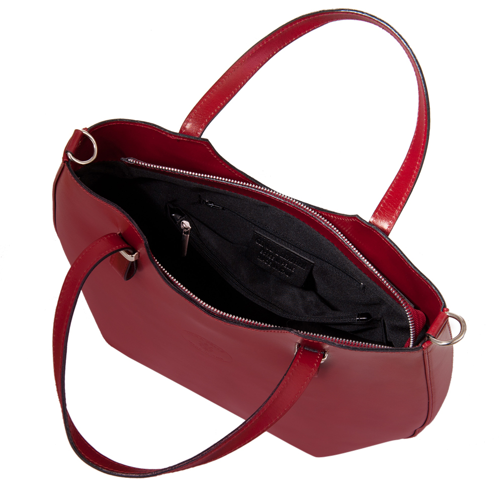 Vera Pelle - włoska pojemna A4 modna skórzana torebka wykonana z wysokogatunkowej naturalnej skóry licowej. Wygodny dostęp do środka. Torebka jednokomorowa. Od góry zamykana na suwak. Wewnątrz dodatkowo 2 x kieszonka za zamek + kieszeń na telefon + kieszonka na drobiazgi. Torebka od środka wykończona porządną, czarną podszewką. Dno usztywnione i podbite srebrnymi nóżkami. W komplecie długi, regulowany pasek na ramię o długości max. 119 cm.