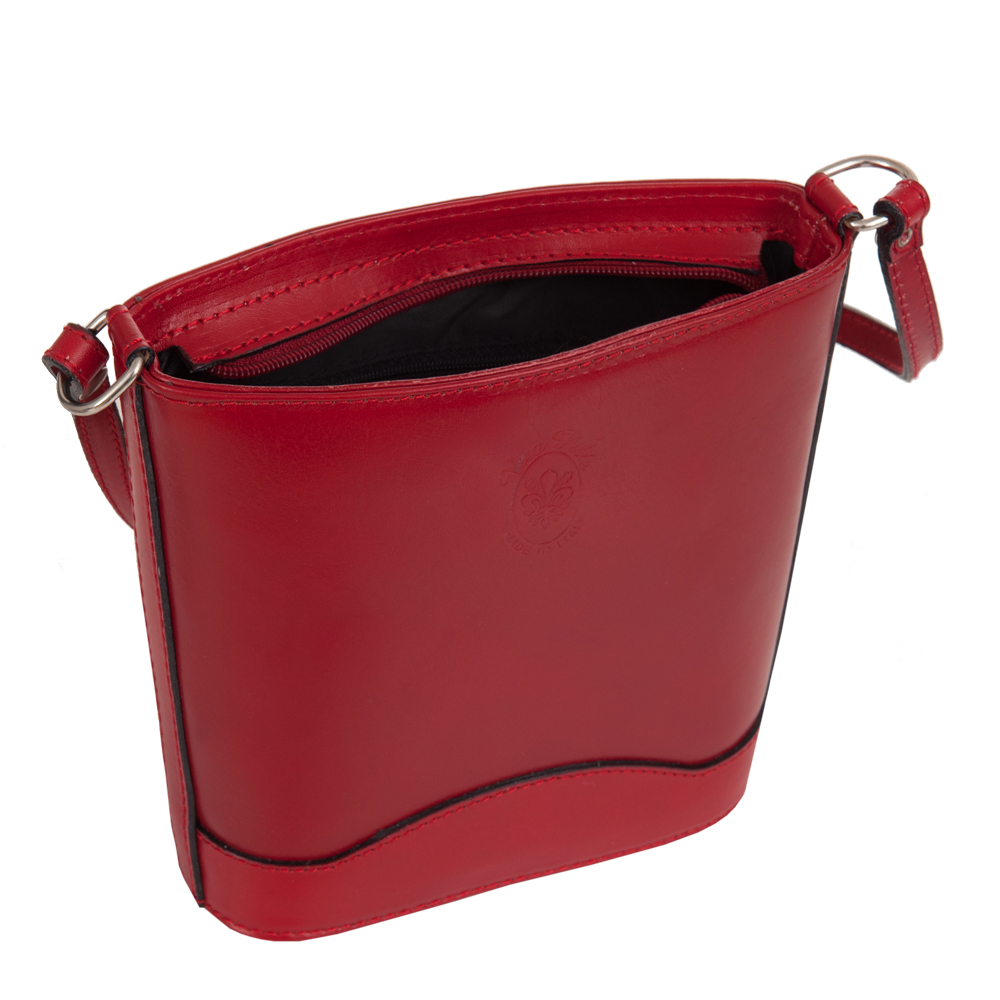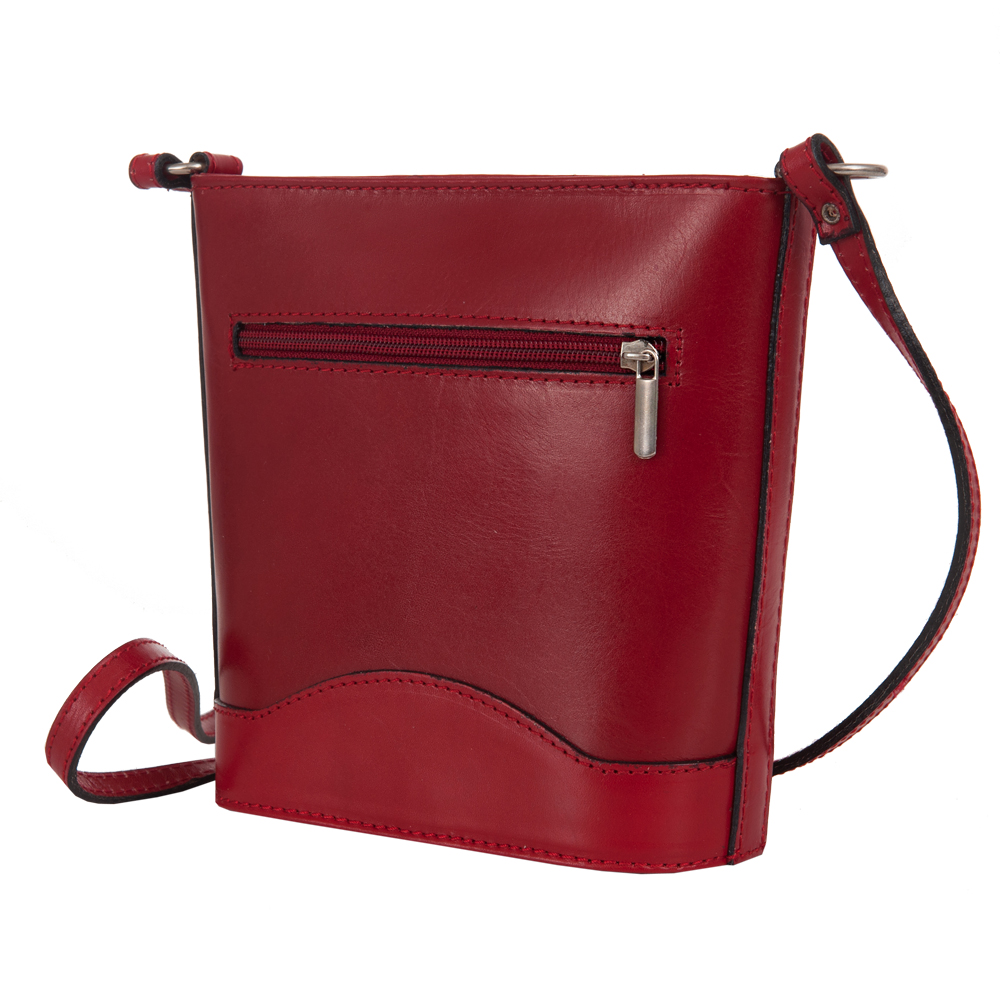 Włoska skórzana listonoszka wykonana z wysokogatunkowej naturalnej gładkiej skóry licowej firmy Pelle. Zamykana z góry na suwak. Spód torebki usztywniony. Torebka jednokomorowa, wewnątrz jedna kieszonka na zamek. Wnętrze wykończone trwałą podszewką. Z tyłu kieszonka na suwak. Długi, regulowany pasek umożliwia wygodne noszenie na ramieniu.