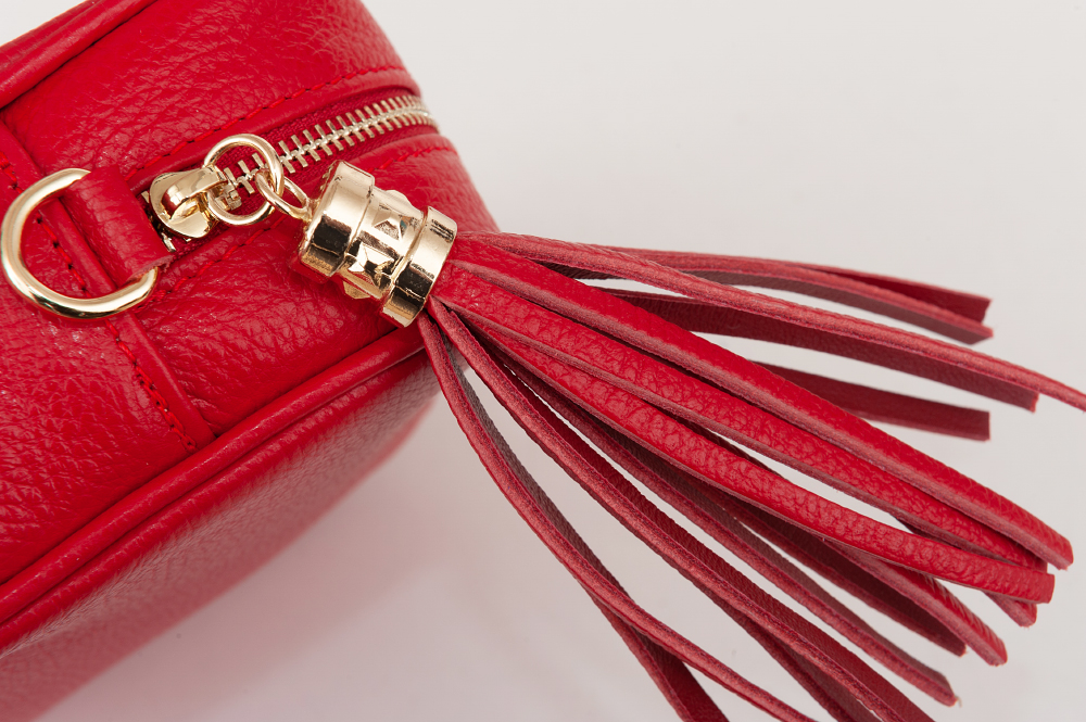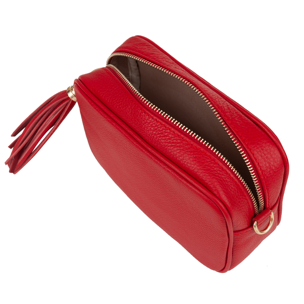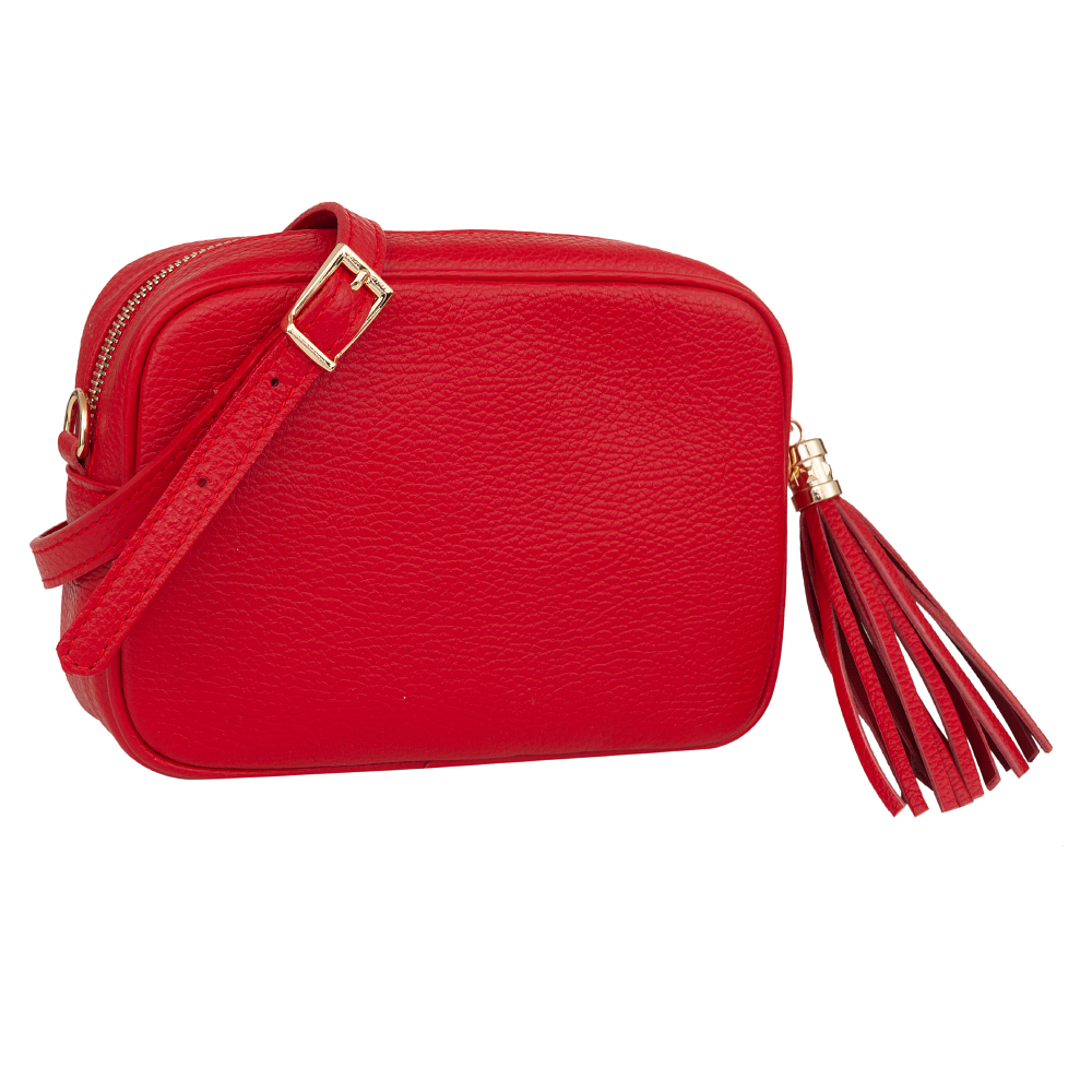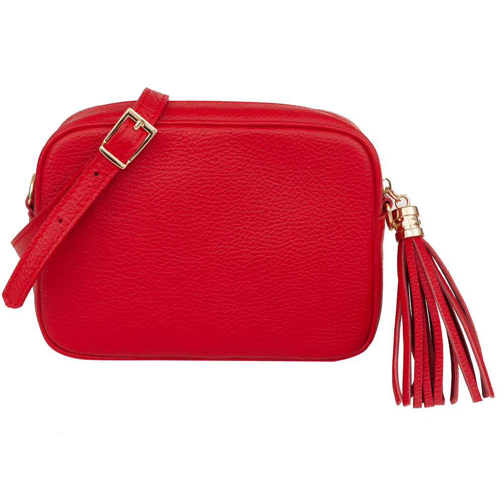 Włoska skórzana torebka listonoszka wykonana z wysokogatunkowej naturalnej skóry licowej firmy VERA PELLE. Zamykana z góry na suwak. Torebka jednokomorowa, wewnątrz jedna kieszonka. Elementy wykończenia w kolorze złotym. Skórzany pasek z możliwością regulacji długości 117-130 cm oraz całkowitego odpięcia, dzięki czemu torebkę można nosić jako elegancką kopertówkę. Suwak zakończony modnym pękiem frędzli.
