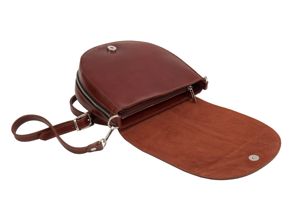 Vera Pelle włoska pojemna skórzana torebka listonoszka wykonana z wysokogatunkowej naturalnej gładkiej skóry licowej. Zamykana na klapkę z magnesem + zamek. Torebka jednokomorowa (wewnątrz kieszonka na zamek + miejsce na telefon). Klapa od wewnątrz wyłożona skórą. Długi, regulowany pasek umożliwia wygodne noszenie na ramieniu lub przez ramię. Pasek można całkowicie wypiąć, dlatego można użyć torebki jako elegancka torebka wyjściowa.