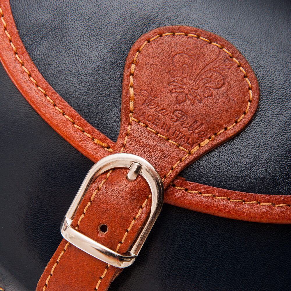 Włoska skórzana listonoszka wykonana z wysokogatunkowej naturalnej gładkiej skóry licowej firmy Pelle. Zamykana na klapkę z magnesem. Torebka dwukomorowa, wewnątrz jedna kieszonka na zamek. Długi, regulowany pasek umożliwia wygodne noszenie na ramieniu.