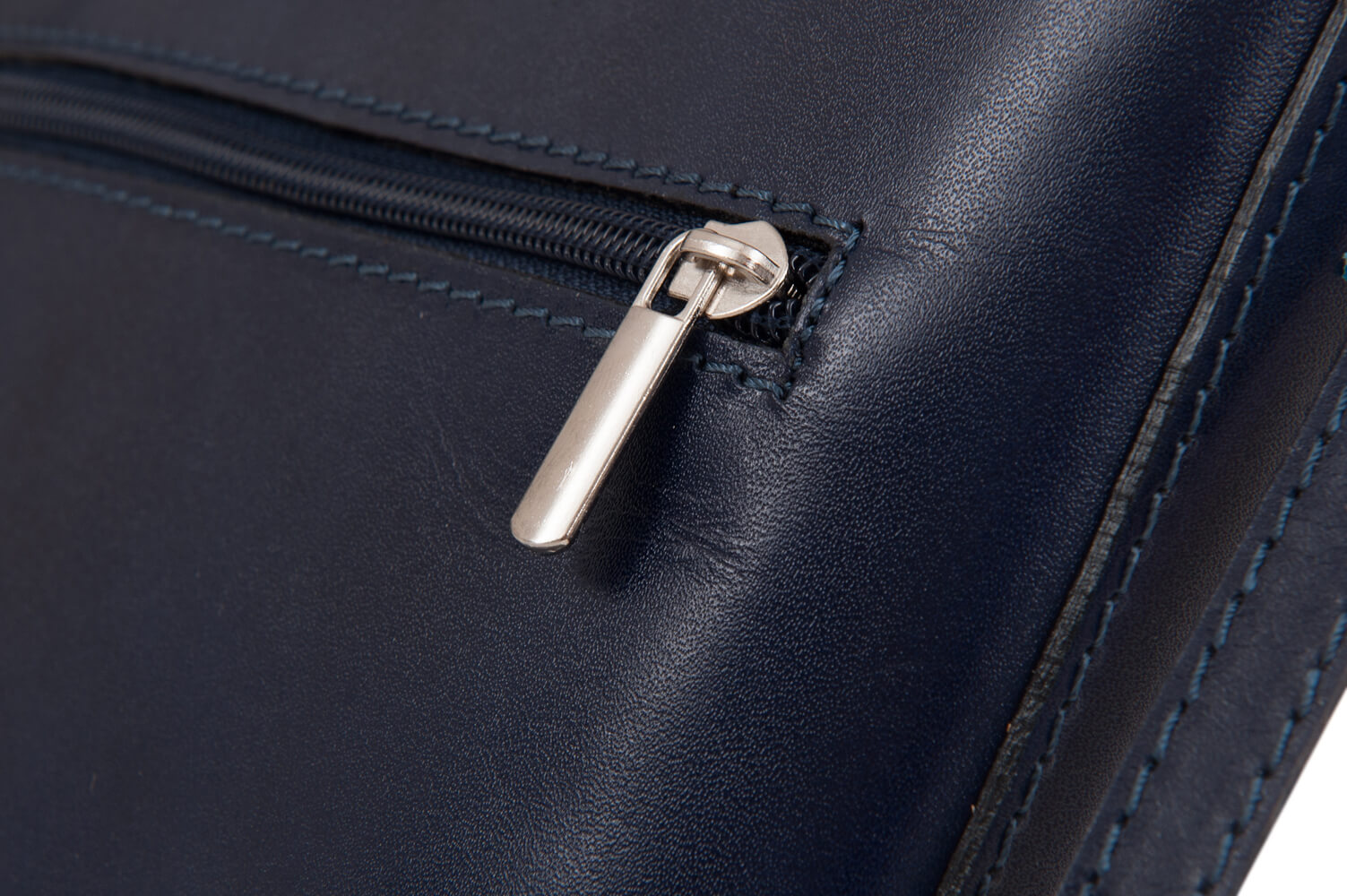 Włoska skórzana listonoszka wykonana z wysokogatunkowej naturalnej gładkiej skóry licowej firmy Pelle. Zamykana z góry na suwak. Spód torebki usztywniony. Torebka jednokomorowa, wewnątrz jedna kieszonka na zamek. Wnętrze wykończone trwałą podszewką. Z tyłu kieszonka na suwak. Długi, regulowany pasek umożliwia wygodne noszenie na ramieniu.