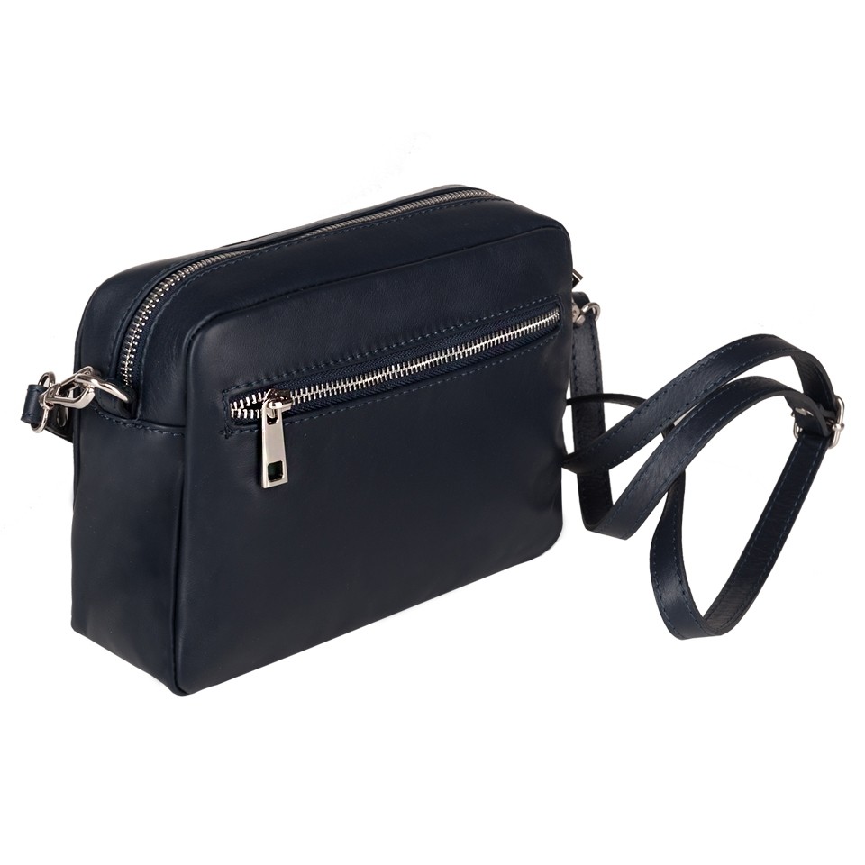 Vera Pelle - włoska modna, skórzana torebka listonoszka wykonana z wysokogatunkowej mięciutkiej gładkiej naturalnej skóry cielęcej. Zamykana od góry na zamek. Spód torebki usztywniony. Torebka jednokomorowa, wewnątrz jedna kieszonka na zamek + kieszonka na telefon. Wnętrze wykończone trwałą, czarną materiałową podszewką. Z tyłu dodatkowa kieszeń na zamek. Regulowany pasek o długości do 133 cm umożliwia wygodne noszenie na ramieniu lub przez ramię. Metalowe elementy wykończenia w kolorze srebrnym.