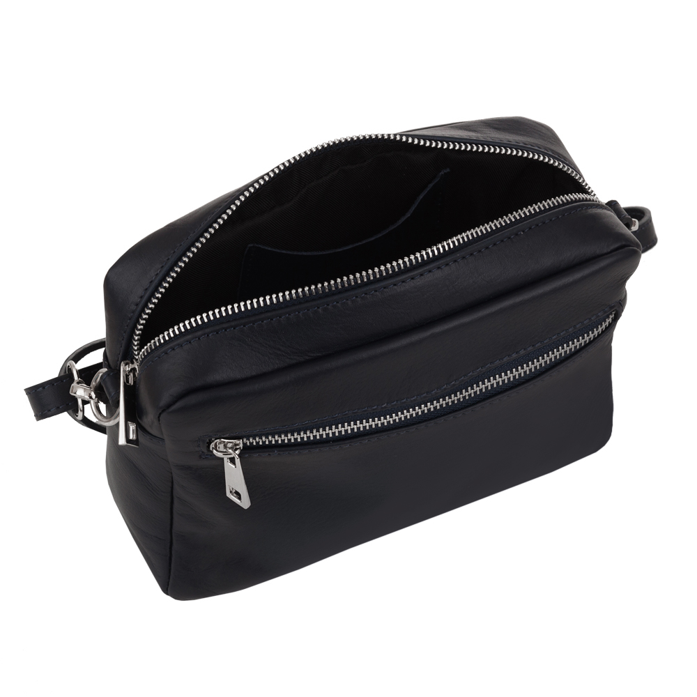 Vera Pelle - włoska pojemna, modna skórzana torebka listonoszka wykonana z wysokogatunkowej mięciutkiej gładkiej naturalnej skóry cielęcej. Zamykana od góry na zamek. Spód torebki usztywniony. Torebka jednokomorowa, wewnątrz jedna kieszonka na zamek + kieszonka na telefon. Wnętrze wykończone trwałą, materiałową podszewką. Z tyłu dodatkowa kieszeń na zamek. Regulowany pasek o długości do 145 cm umożliwia wygodne noszenie na ramieniu lub przez ramię. Metalowe elementy wykończenia w kolorze srebrnym. Dodatkowa kiesznka wsuwna z przodu.