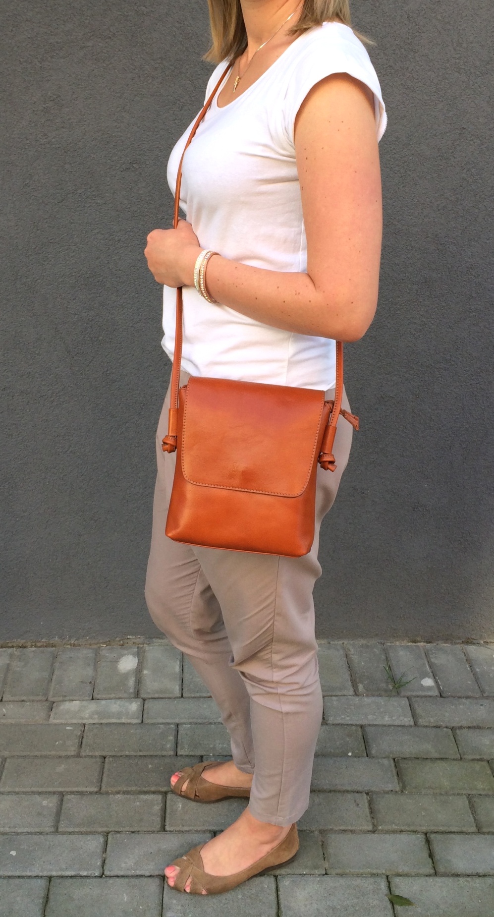 Włoska skórzana listonoszka wykonana z wysokogatunkowej naturalnej gładkiej skóry licowej firmy Pelle. Zamykana z góry na suwak + klapka na magnes. Spód torebki usztywniony. Torebka jednokomorowa, wewnątrz jedna kieszonka na zamek oraz jedna na telefon. Wnętrze wykończone trwałą podszewką. Z tyłu kieszonka na suwak. Długi pasek umożliwia wygodne noszenie na ramieniu.