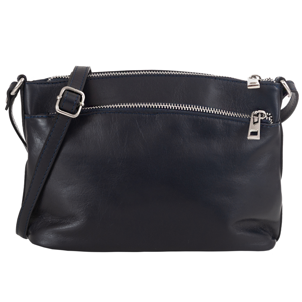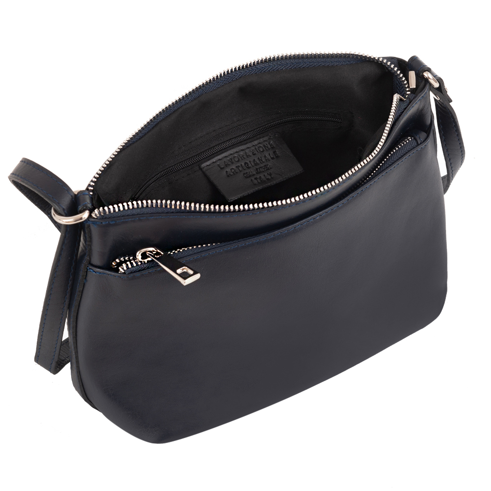 Vera Pelle - Włoska klasyczna pojemna skórzana torebka listonoszka wykonana z wysokogatunkowej miękkiej naturalnej skóry cielęcej. Zamykana z góry na zamek na całej szerokości. Trzy osobno zamykane na zamek komory. W środkowej głównej komorze kieszonka na zamek + kieszonka na telefon. Wnętrze wykończone trwałą, czarną materiałową podszewką. Pasek z możliwością regulacji długości do 125 cm. Metalowe elementy w kolorze srebrnym.