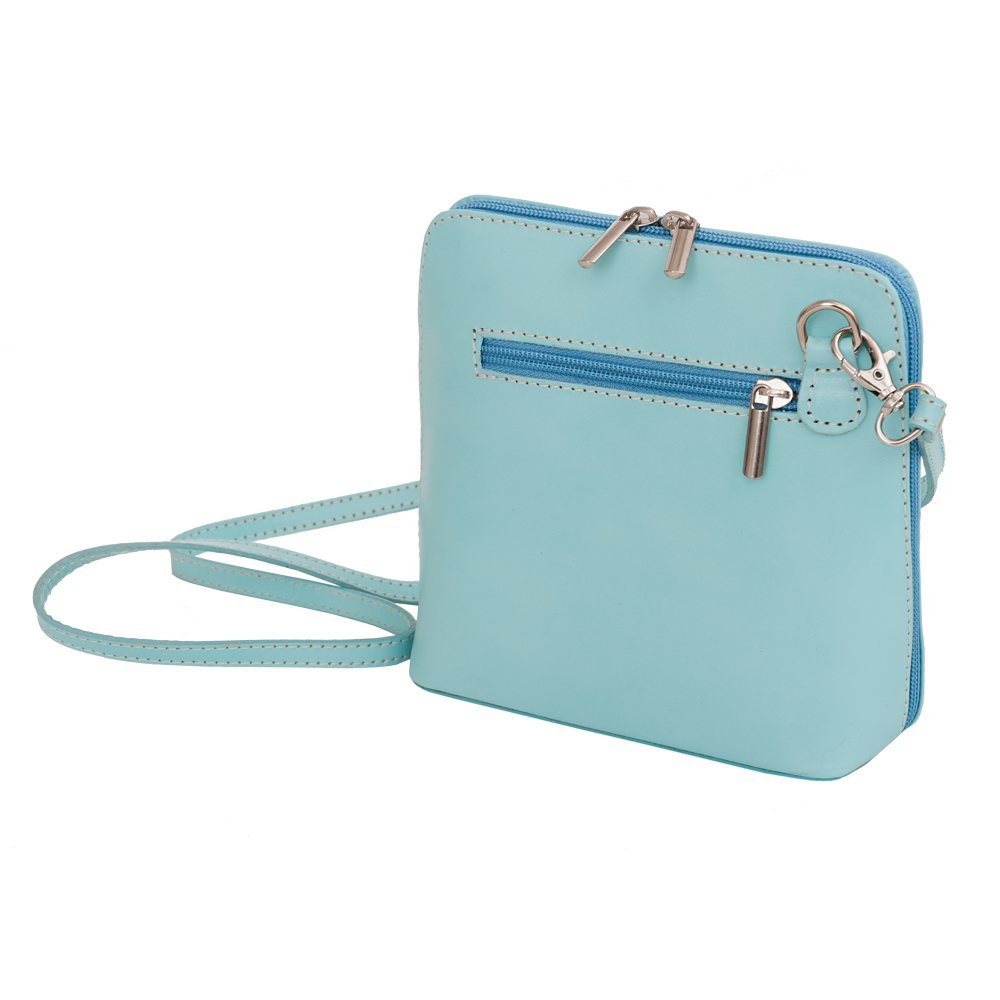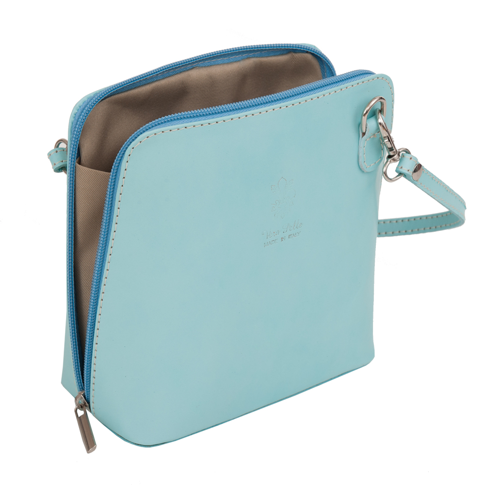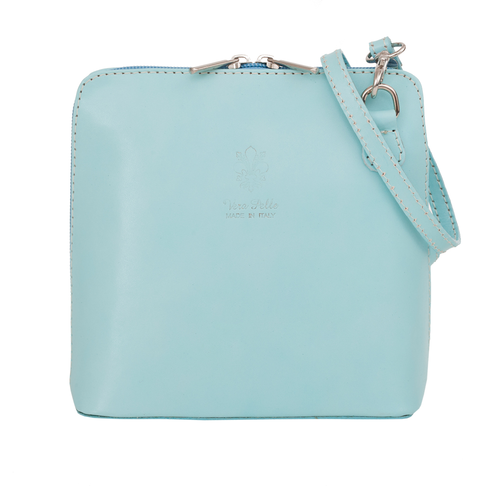Vera Pelle - włoska mała, zgrabna skórzana listonoszka wykonana z wysokogatunkowej naturalnej gładkiej skóry licowej. Główna komora zamykana na podwójny suwak. Spód torebki usztywniony. Torebka jednokomorowa, wewnątrz dwie kieszonki. Wnętrze wykończone trwałą podszewką. Z tyłu kieszonka na suwak. Długi pasek umożliwia wygodne noszenie na ramieniu.