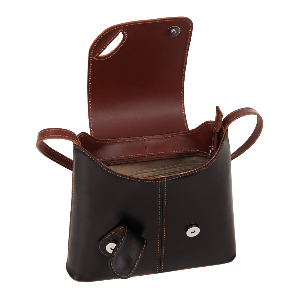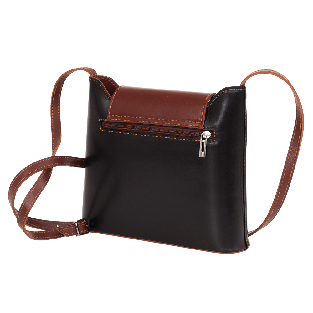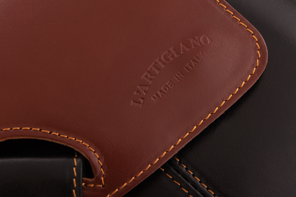 Włoska skórzana listonoszka wykonana z wysokogatunkowej naturalnej gładkiej skóry licowej firmy L'ARTIGIANO. Zamykana z góry na suwak + klapka na magnesy. Spód torebki usztywniony. Torebka jednokomorowa, wewnątrz jedna kieszonka na zamek oraz jedna na telefon. Wnętrze wykończone trwałą podszewką. Z tyłu kieszonka na suwak. Długi, regulowany pasek umożliwia wygodne noszenie na ramieniu.
