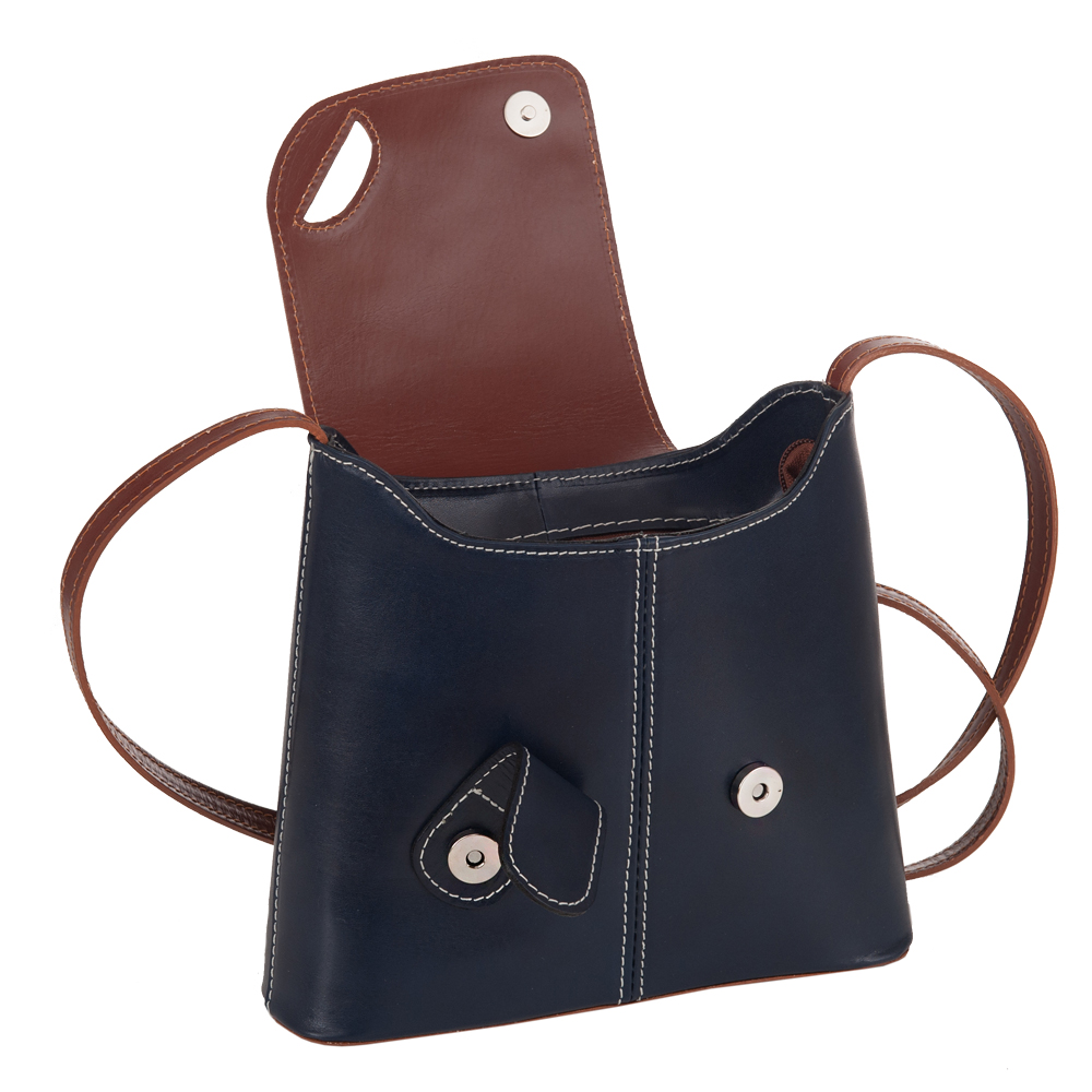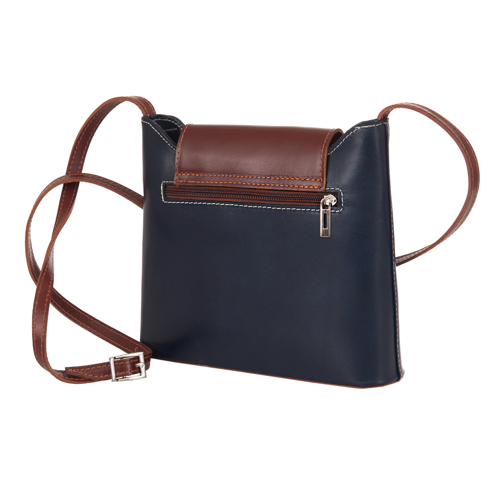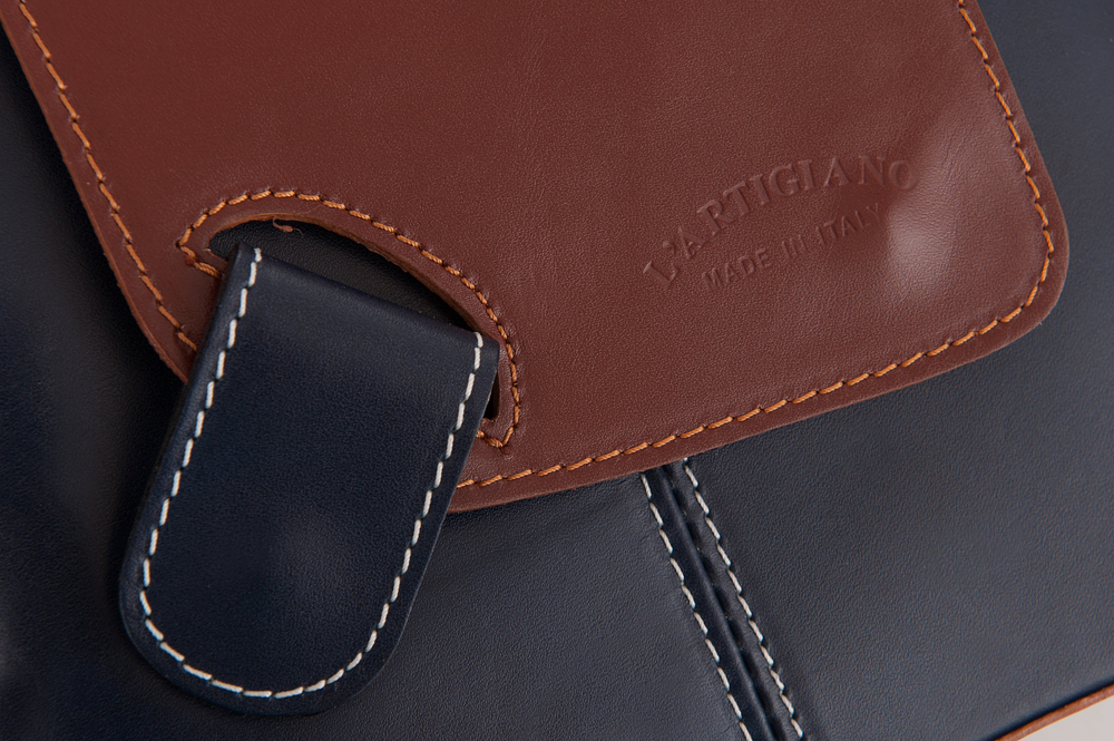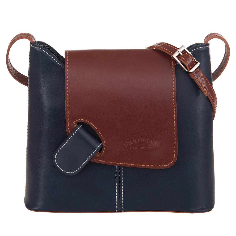Włoska skórzana listonoszka wykonana z wysokogatunkowej naturalnej gładkiej skóry licowej firmy L'ARTIGIANO. Zamykana z góry na suwak + klapka na magnesy. Spód torebki usztywniony. Torebka jednokomorowa, wewnątrz jedna kieszonka na zamek oraz jedna na telefon. Wnętrze wykończone trwałą podszewką. Z tyłu kieszonka na suwak. Długi, regulowany pasek umożliwia wygodne noszenie na ramieniu.