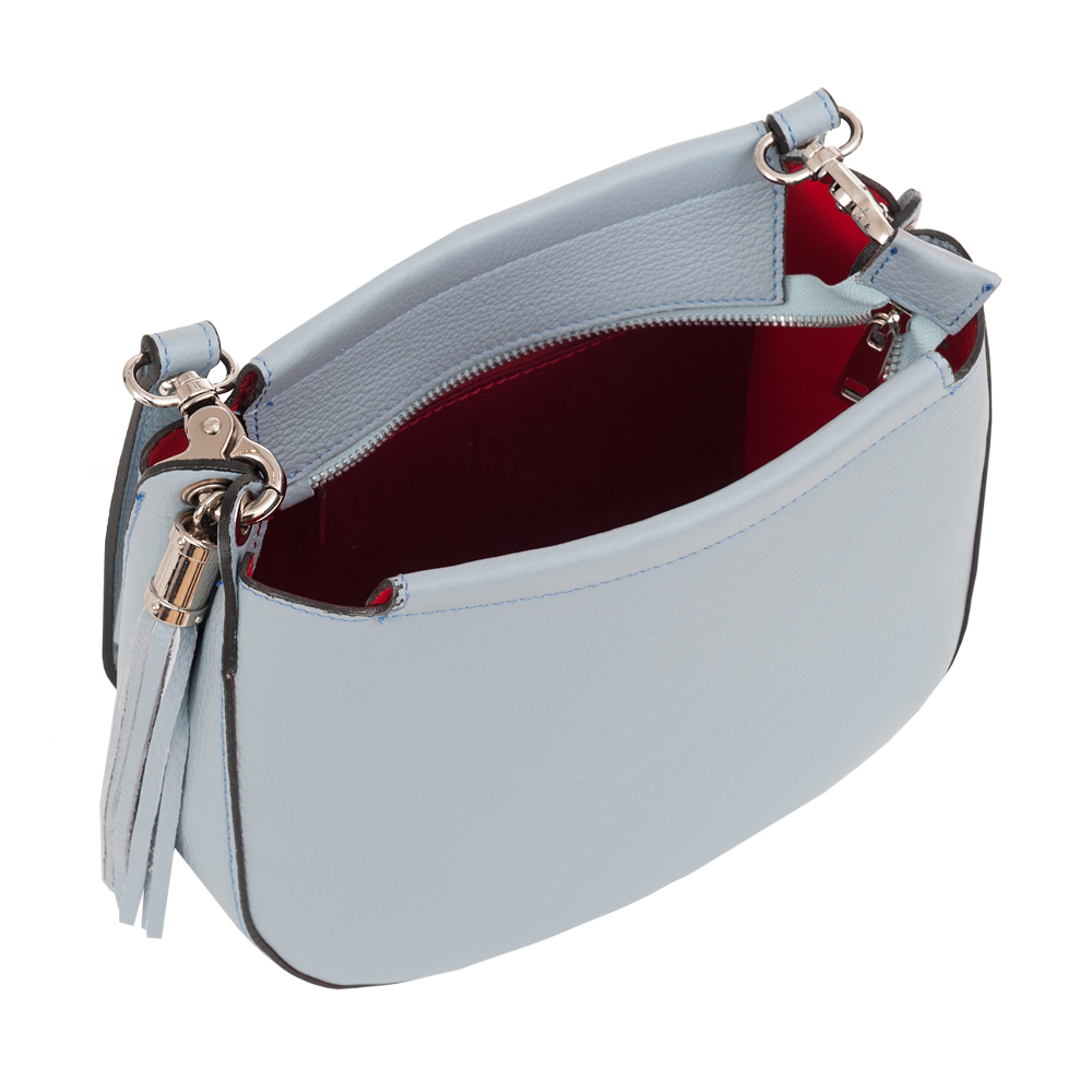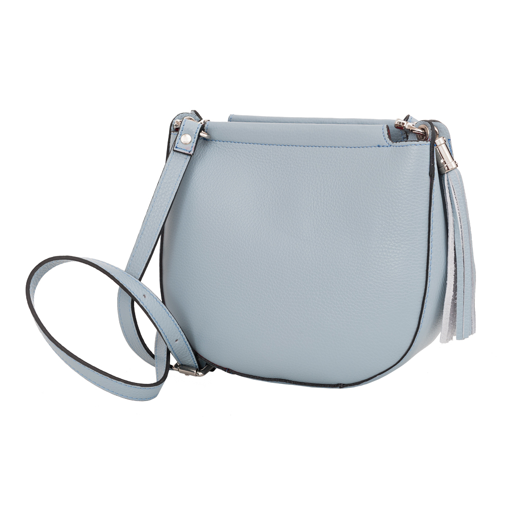Włoska skórzana torebka listonoszka wykonana z wysokogatunkowej naturalne skóry firmy VERA PELLE. Zamykana z góry na suwak. Torebka jednokomorowa, wewnątrz jedna kieszonka. Elementy wykończenia w kolorze srebrnym. Skórzany pasek z możliwością regulacji długości 112-122 cm oraz całkowitego odpięcia, dzięki czemu torebkę można nosić jako elegancką kopertówkę. Suwak zakończony modnym pękiem frędzli.