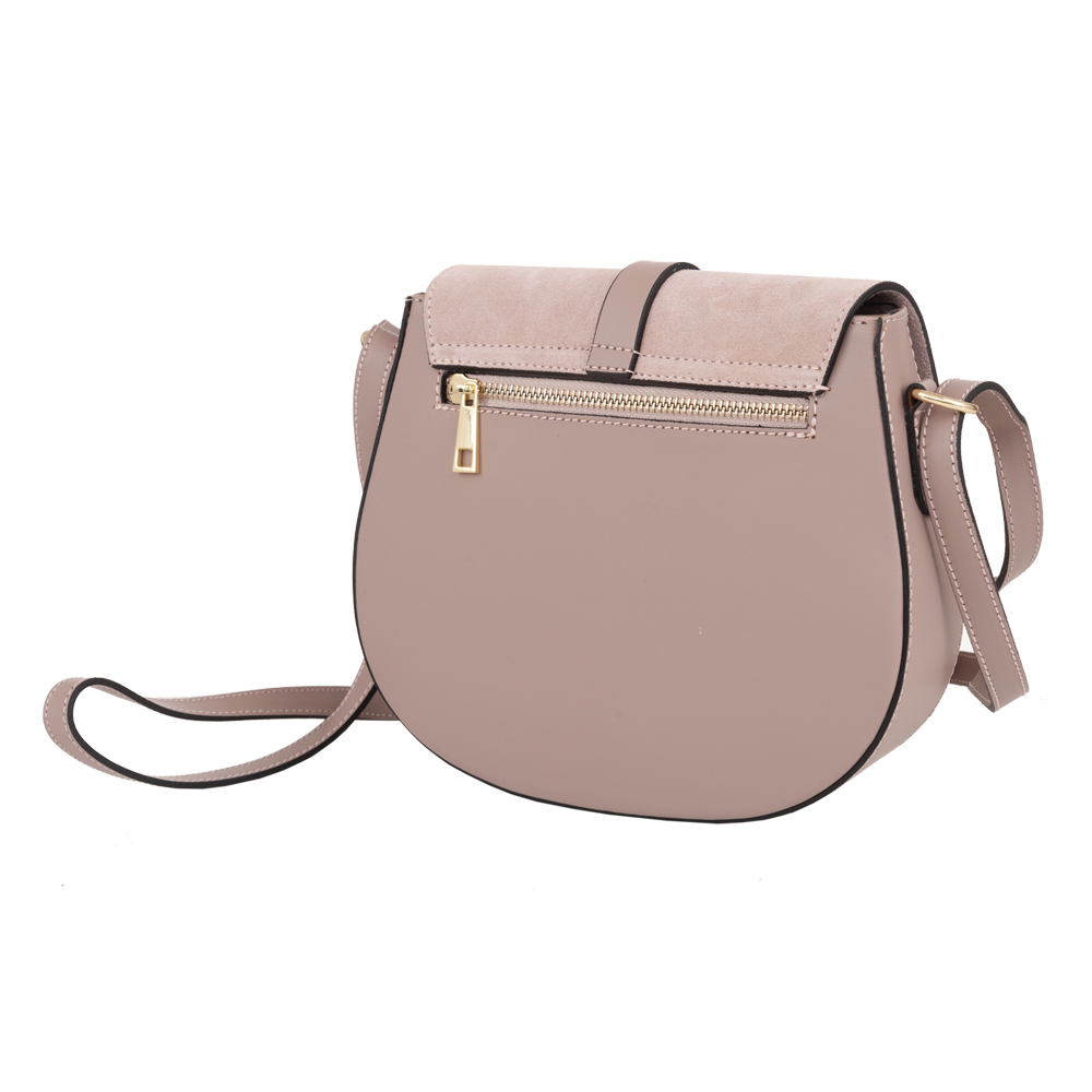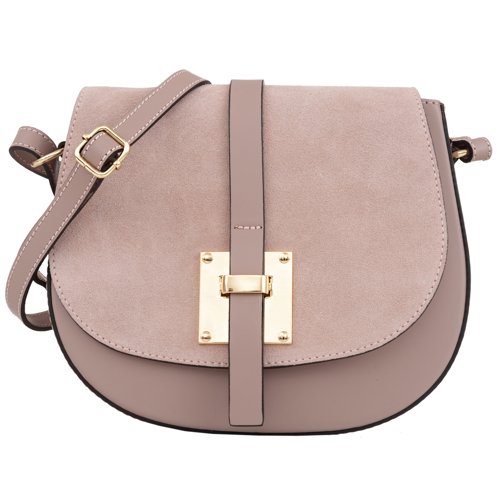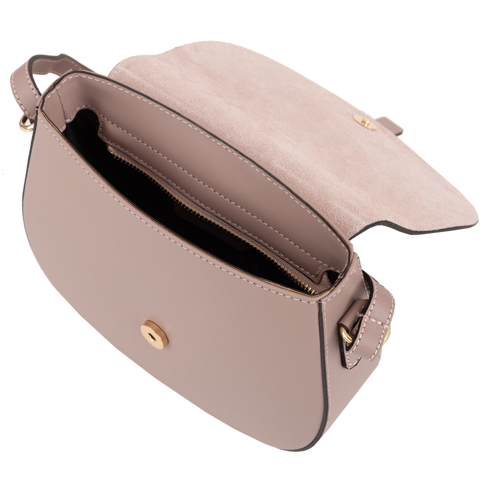 Włoska skórzana torebka listonoszka wykonana z wysokogatunkowej naturalnej skóry licowej łączonej z gładkim zamszem na klapie firmy VERA PELLE. Torebka w stylu miejskim. Modne połączenie dwóch rodzajów skór naturalnych. Zamykana z góry na klapę na magnes + zamek. Torebka jednokomorowa, wewnątrz jedna kieszonka na zamek + z tyłu kieszeń na zamek. Elementy wykończenia w kolorze złotym. Skórzany pasek z możliwością regulacji długości do 143 cm.