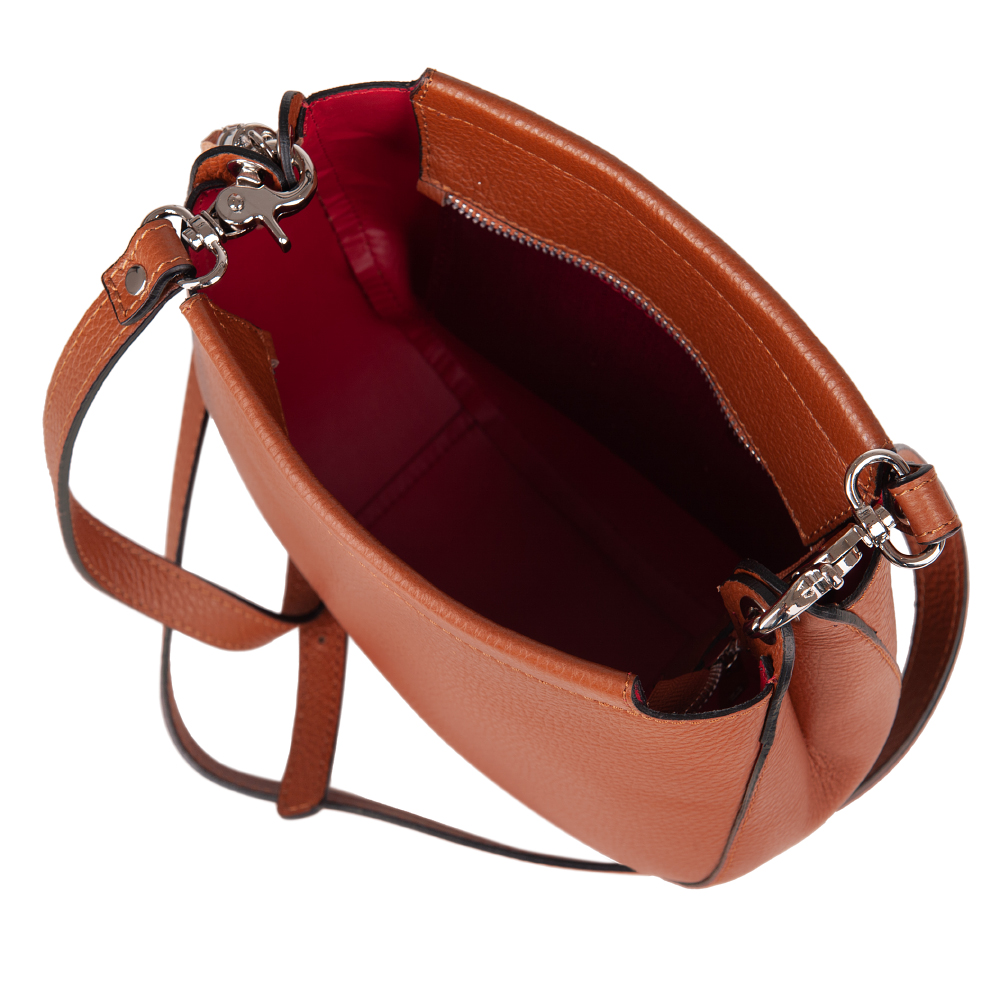 Włoska skórzana torebka listonoszka wykonana z wysokogatunkowej naturalne skóry firmy VERA PELLE. Zamykana z góry na suwak. Torebka jednokomorowa, wewnątrz jedna kieszonka. Elementy wykończenia w kolorze srebrnym. Skórzany pasek z możliwością regulacji długości do 122 cm oraz całkowitego odpięcia, dzięki czemu torebkę można nosić jako elegancką kopertówkę. Suwak zakończony modnym pękiem frędzli.