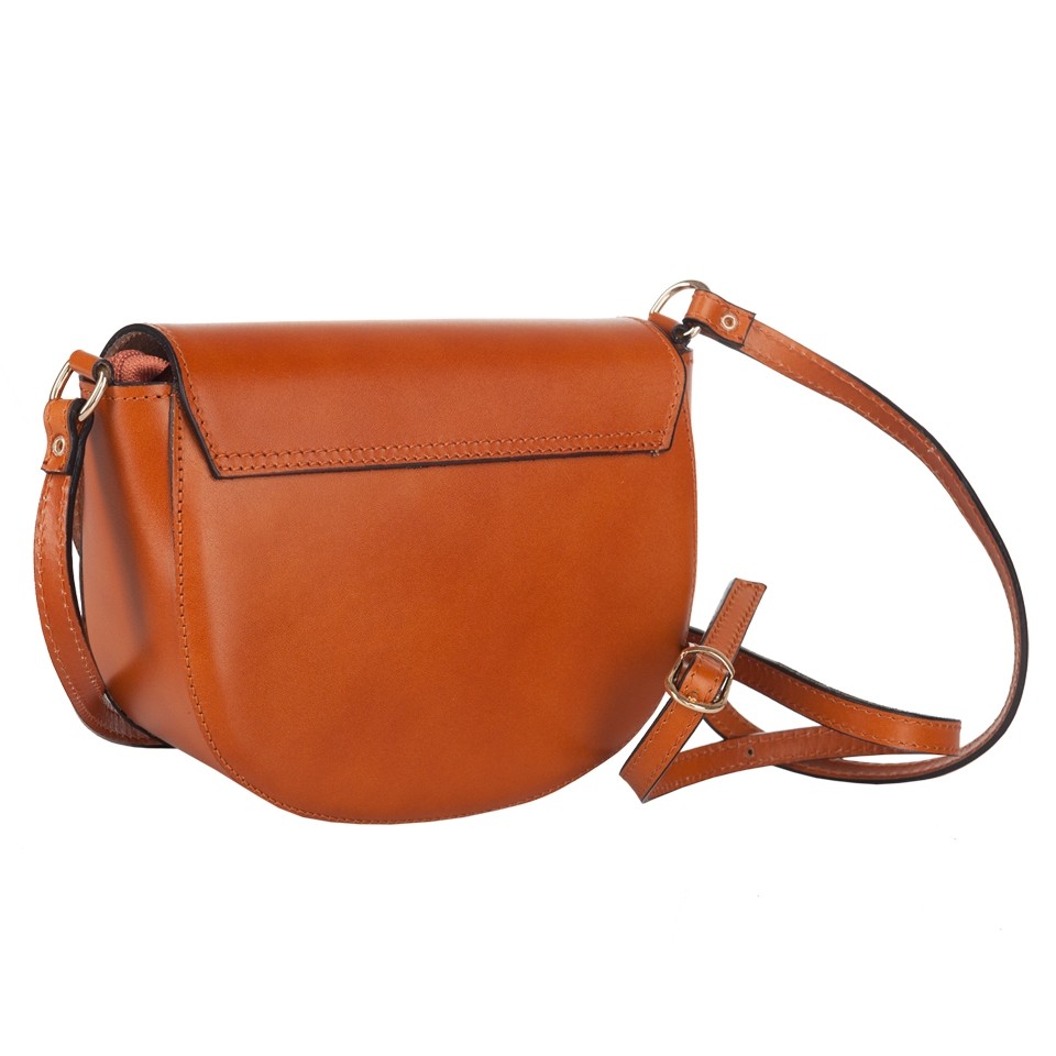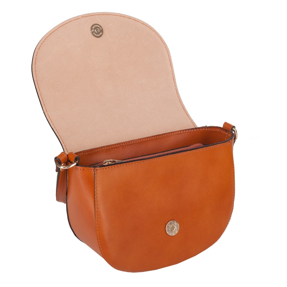 Vera Pelle - Włoska skórzana listonoszka torebka wykonana z wysokogatunkowej naturalnej gładkiej skóry licowej. Zamykana na klapę z magnesem + zamek pod klapą na całej szerokośći. Torebka jednokomorowa, wewnątrz jedna kieszonka na zamek. Wnętrze wykończone trwałą, czarną materiałową podszewką. Z przodu ozdobne kółeczko. Długi, regulowany pasek umożliwia wygodne noszenie na ramieniu. Elementy metalowe w kolorze złotym.