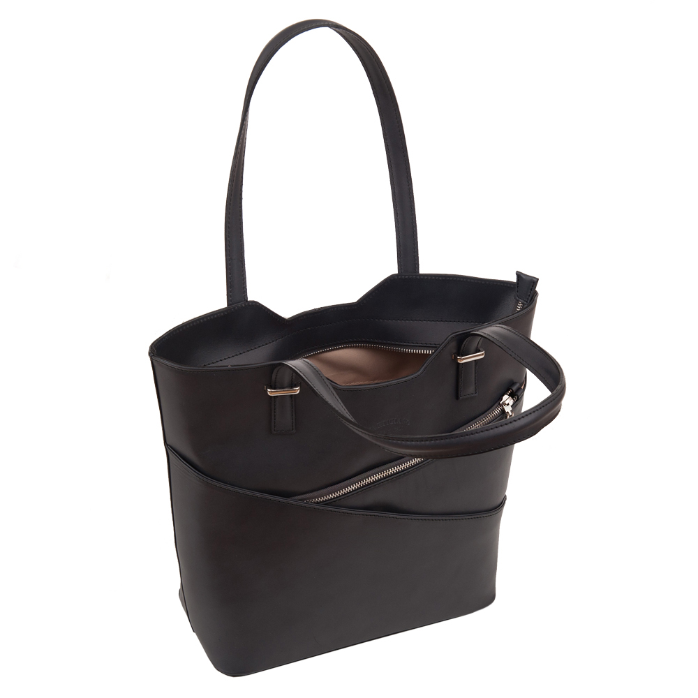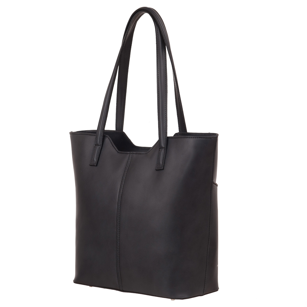 Vera Pelle - włoska elegancka A4 skórzana torebka wykonana z wysokogatunkowej naturalnej skóry licowej. Wygodny dostęp do środka. Torebka jednokomorowa przedzielona na środku dużą kieszenią na suwak. Od góry zamykana na zamek. Wewnątrz dodatkowo kieszonka za zamek + kieszeń na telefon. Z przodu kieszonka na zamek + kieszonka na magnes. Torebka od środka wykończona porządną podszewką. Dno usztywnione i podbite srebrnymi nóżkami, aby nie niszczył się spód. Elementy metalowe w kolorze srebrnym.