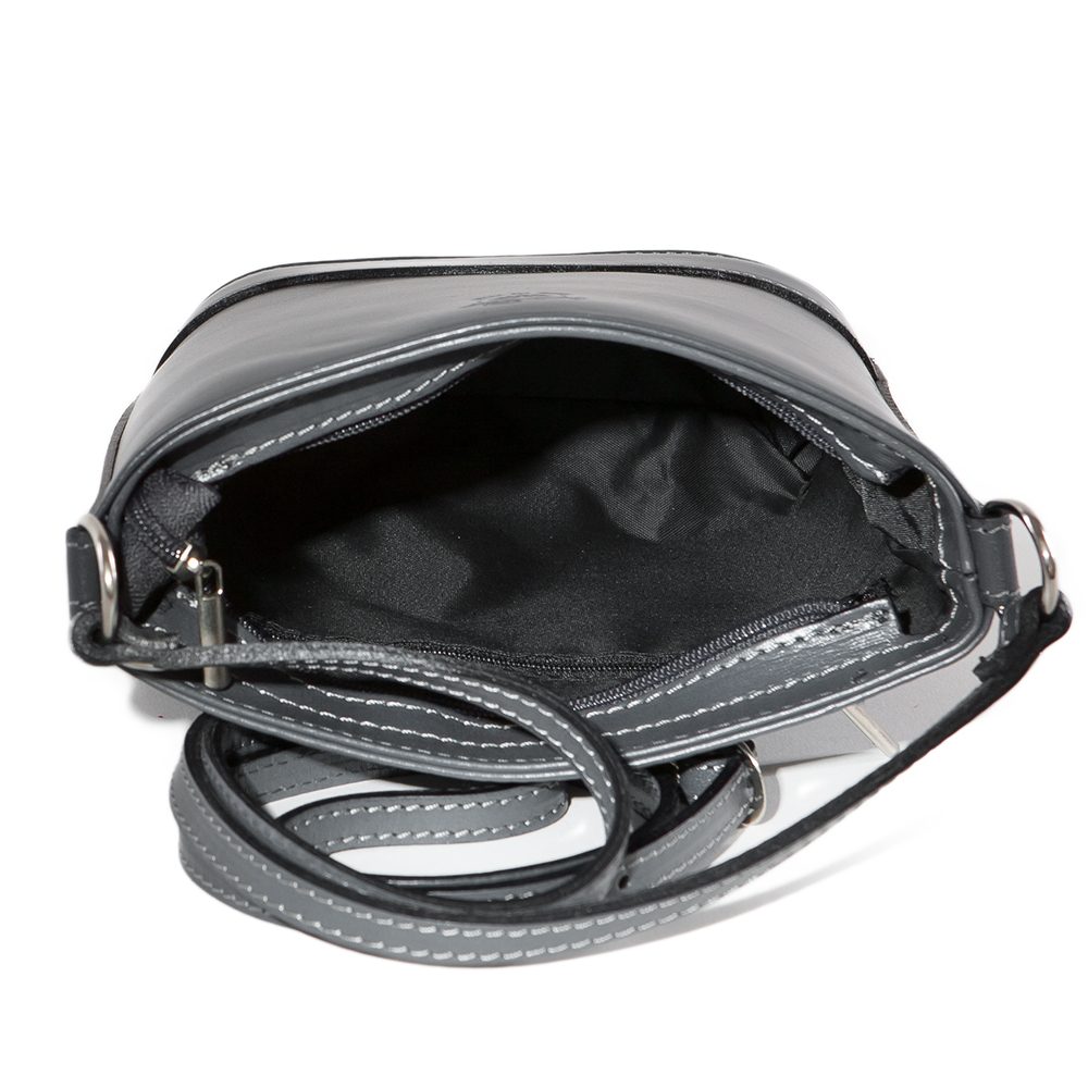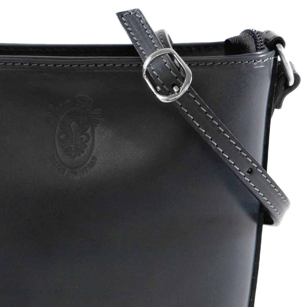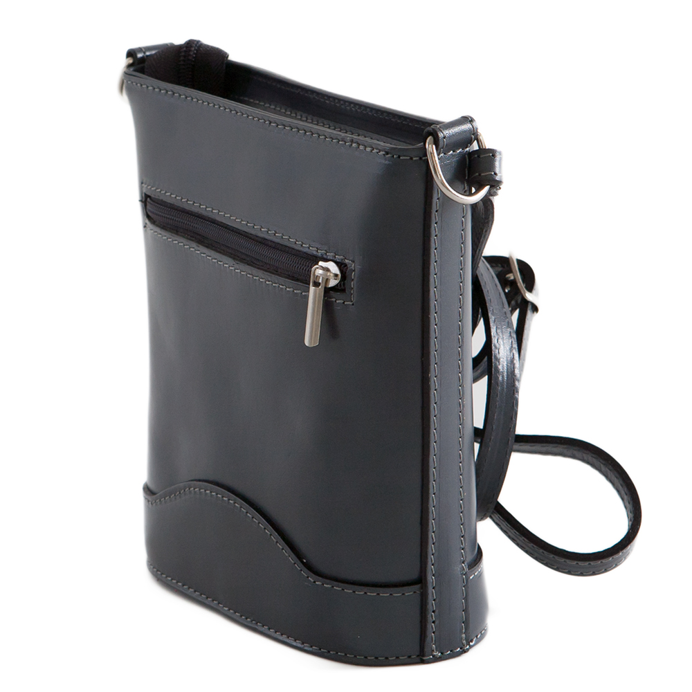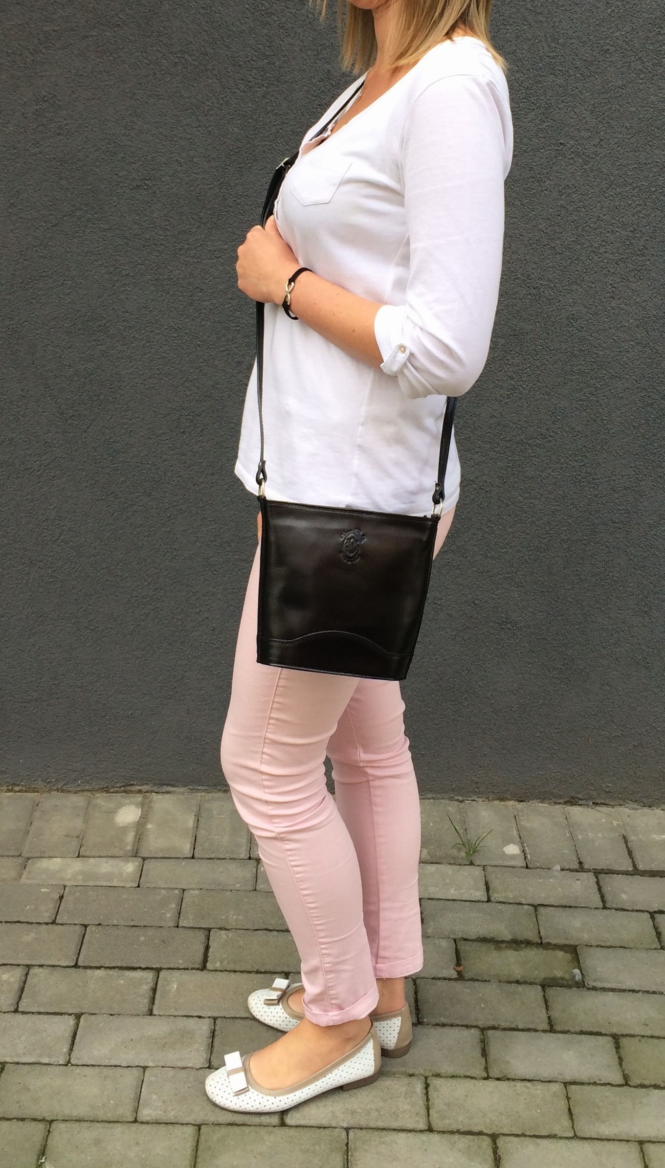 Włoska skórzana listonoszka wykonana z wysokogatunkowej naturalnej gładkiej skóry licowej firmy Pelle. Zamykana z góry na suwak. Spód torebki usztywniony. Torebka jednokomorowa, wewnątrz jedna kieszonka na zamek. Wnętrze wykończone trwałą podszewką. Z tyłu kieszonka na suwak. Długi, regulowany pasek umożliwia wygodne noszenie na ramieniu.