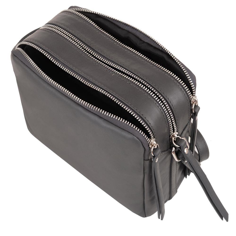 Vera Pelle - Włoska modna pojemna skórzana torebka listonoszka wykonana z wysokogatunkowej miękkiej naturalnej skóry cielęcej. Zamykana z góry na zamek na całej szerokości. Torebka trzykomorowa. Wewnątrz w środkowej komorze jedna kieszonka na zamek oraz jedna na telefon. Wnętrze wykończone trwałą, czarną materiałową podszewką. Pasek z możliwością regulacji długości 67-140 cm.