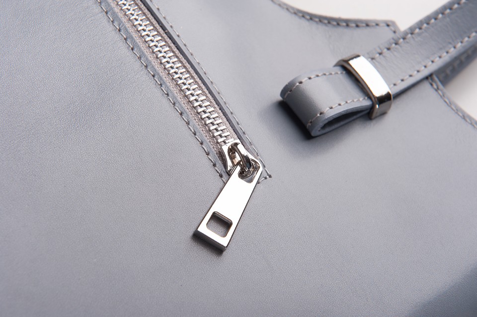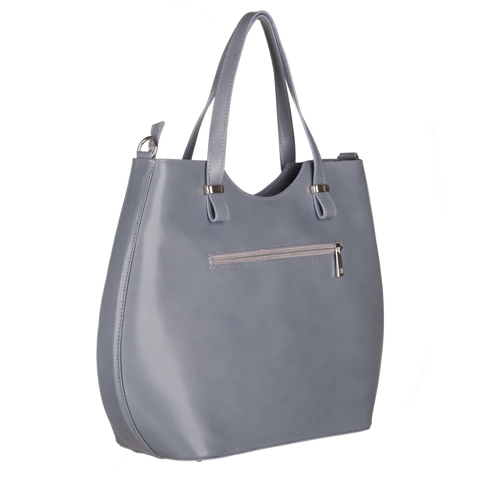 Vera Pelle - włoska pojemna A4 modna skórzana torebka wykonana z wysokogatunkowej naturalnej skóry licowej. Wygodny dostęp do środka. Torebka jednokomorowa. Od góry zamykana na suwak. Wewnątrz dodatkowo 2 x kieszonka za zamek + kieszeń na telefon + kieszonka na drobiazgi. Torebka od środka wykończona porządną, materiałową podszewką. Dno usztywnione i podbite srebrnymi nóżkami. W komplecie długi, regulowany pasek na ramię o długości max. 119 cm.