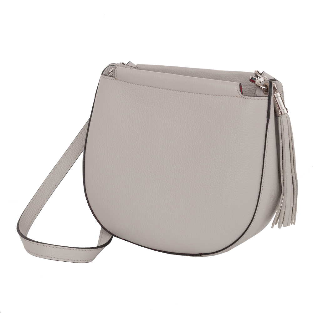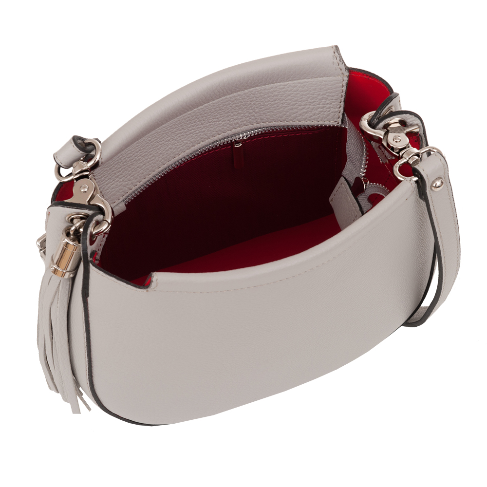 Włoska skórzana torebka listonoszka wykonana z wysokogatunkowej naturalne skóry firmy VERA PELLE. Zamykana z góry na suwak. Torebka jednokomorowa, wewnątrz jedna kieszonka. Elementy wykończenia w kolorze srebrnym. Skórzany pasek z możliwością regulacji długości do 122 cm oraz całkowitego odpięcia, dzięki czemu torebkę można nosić jako elegancką kopertówkę. Suwak zakończony modnym pękiem frędzli.