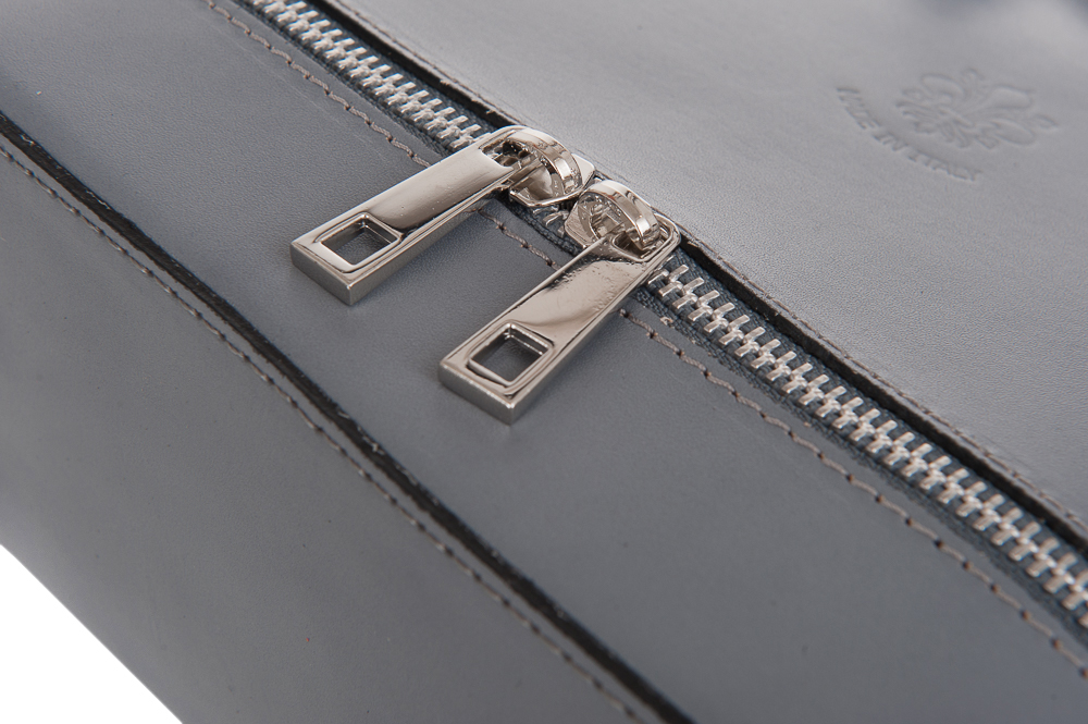 Vera Pelle - włoska zgrabna skórzana listonoszka wykonana z wysokogatunkowej naturalnej gładkiej skóry licowej. Główna komora zamykana na zamek. Spód torebki usztywniony. Torebka jednokomorowa, wewnątrz kieszonka na zamek + kieszonka na telefon. Wnętrze wykończone trwałą podszewką. Z tyłu kieszonka na suwak. Długi regulowany pasek umożliwia wygodne noszenie na ramieniu lub przez ramię.