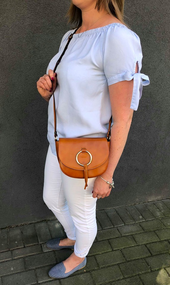 Vera Pelle - Włoska skórzana listonoszka torebka wykonana z wysokogatunkowej naturalnej gładkiej skóry licowej. Zamykana na klapę z magnesem + zamek pod klapą na całej szerokośći. Torebka jednokomorowa, wewnątrz jedna kieszonka na zamek. Wnętrze wykończone trwałą, czarną materiałową podszewką. Z przodu ozdobne kółeczko. Długi, regulowany pasek umożliwia wygodne noszenie na ramieniu. Elementy metalowe w kolorze złotym.