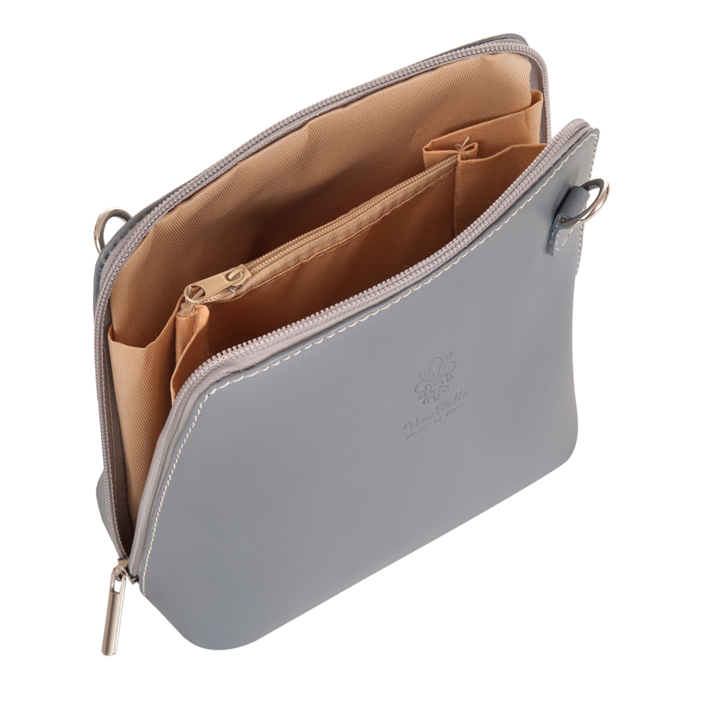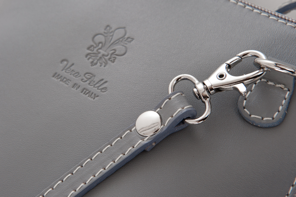 Vera Pelle - włoska mała, zgrabna skórzana listonoszka wykonana z wysokogatunkowej naturalnej gładkiej skóry licowej. Główna komora zamykana na podwójny suwak. Spód torebki usztywniony. Torebka jednokomorowa, wewnątrz dwie kieszonki. Wnętrze wykończone trwałą podszewką. Z tyłu kieszonka na suwak. Długi pasek umożliwia wygodne noszenie na ramieniu.