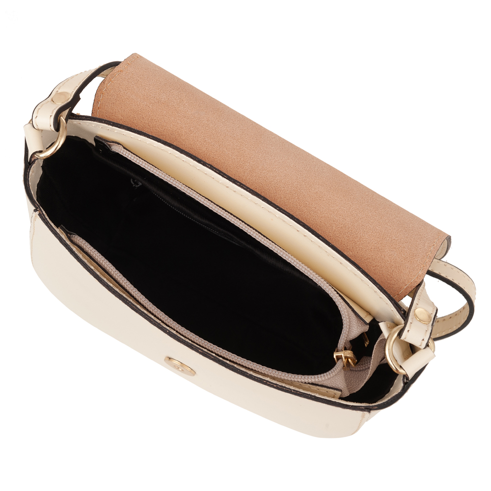 Vera Pelle - Włoska skórzana listonoszka torebka wykonana z wysokogatunkowej naturalnej gładkiej skóry licowej. Zamykana na klapę z magnesem + zamek pod klapą na całej szerokośći. Torebka jednokomorowa, wewnątrz jedna kieszonka na zamek. Wnętrze wykończone trwałą, czarną materiałową podszewką. Z przodu ozdobne kółeczko. Długi, regulowany pasek umożliwia wygodne noszenie na ramieniu. Elementy metalowe w kolorze złotym.