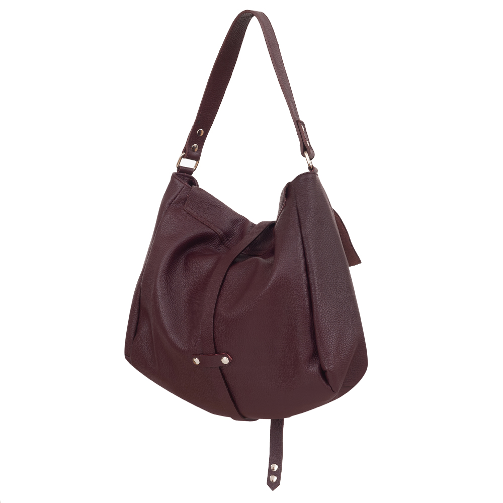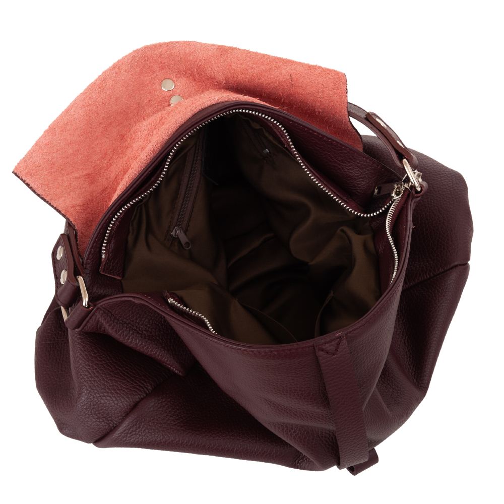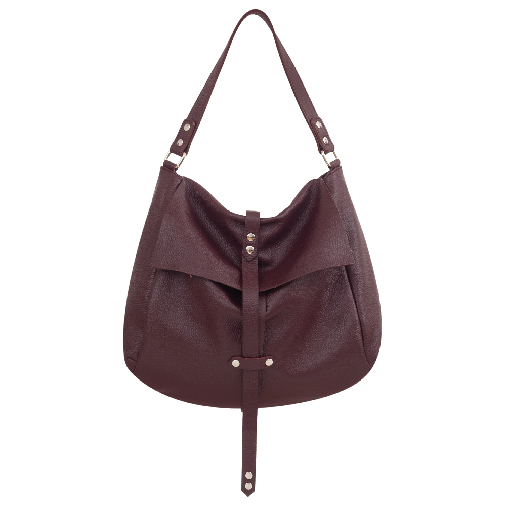 Vera Pelle - włoska XL skórzana torebka worek wykonana z wysokogatunkowej miękkiej naturalnej skóry. Oryginalna torebka w miejskim stylu, idealna na codzień. Zamykana z góry zamek + klapa. Torebka jednokomorowa. Wewnątrz kieszonka na zamek, kieszonka na telefon. Wnętrze wykończone trwałą czarną materiałową podszewką. W komplecie długi regulowany pasek na ramię o maksymalnej długości 113 cm.