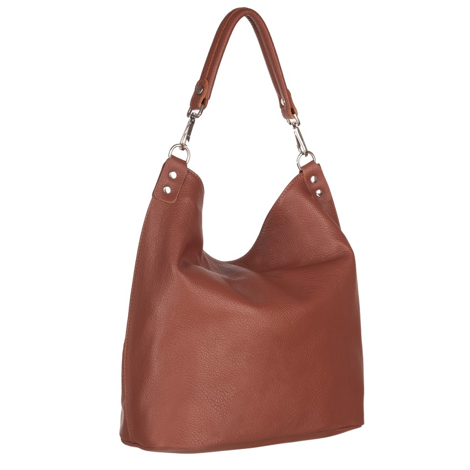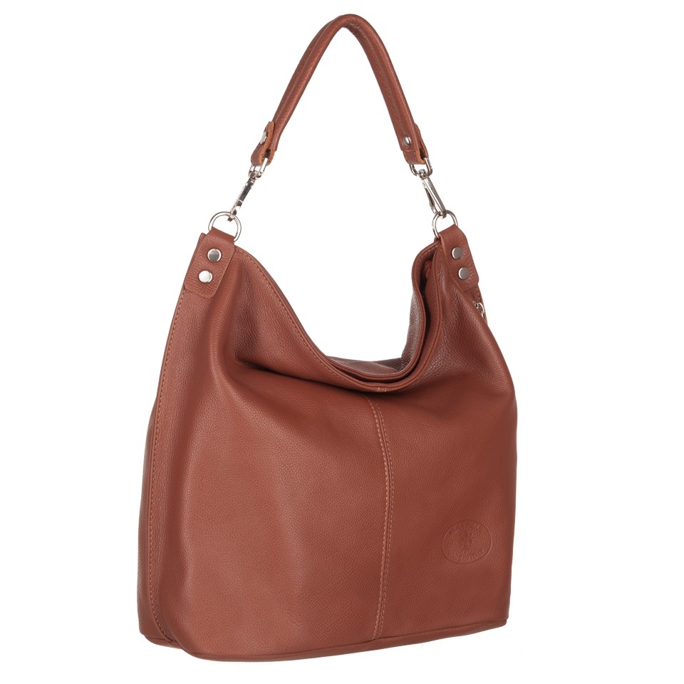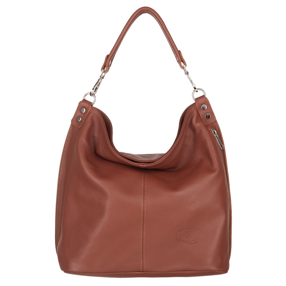 Vera Pelle - włoska XL skórzana torebka worek wykonana z wysokogatunkowej miękkiej naturalnej skóry dolaro odpornej na zarysowania. Oryginalna torebka w miejskim stylu, idealna na codzień. Zamykana z góry na suwak. Torebka jednokomorowa. Wewnątrz 2 x kieszonka na zamek, kieszonka na drobiazgi + jedna na telefon. Z przodu pojemna kieszeń zamek. Wnętrze wykończone trwałą materiałową podszewką. Dno lekko usztywnione. W komplecie długi regulowany pasek na ramię o maksymalnej długości 125 cm. Możliwość całkowitego wypięcia krótszego ucha i noszenie na długim pasku.