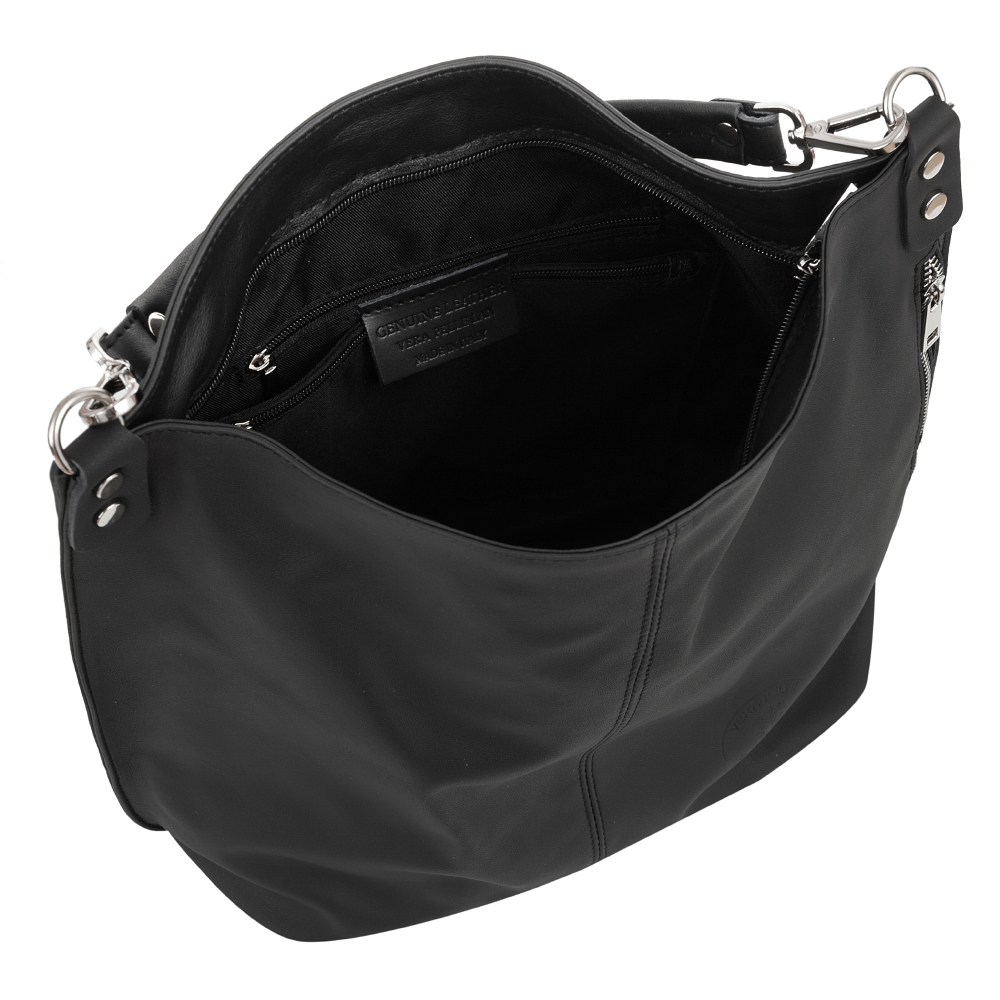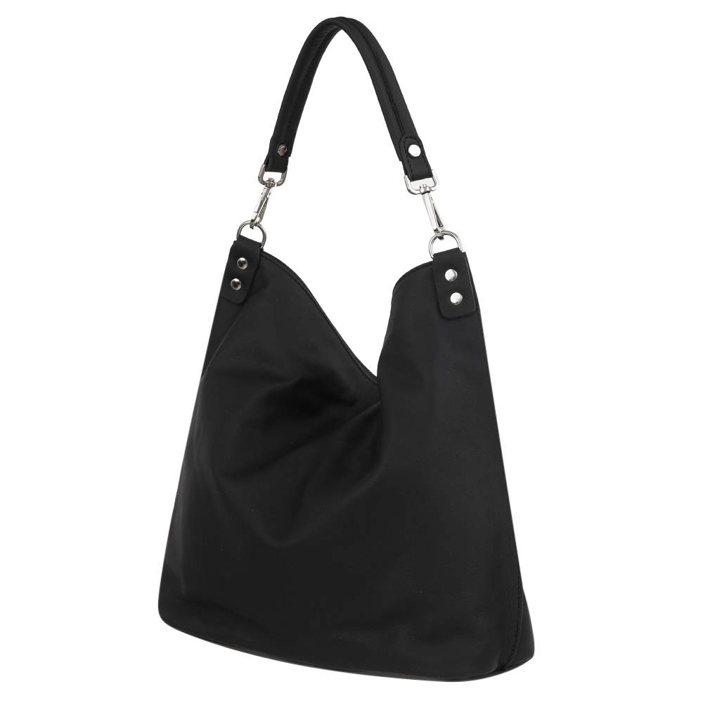 Vera Pelle - włoska XL skórzana torebka worek wykonana z wysokogatunkowej miękkiej naturalnej skóry cielęcej. Oryginalna torebka w miejskim stylu, idealna na codzień. Zamykana z góry na suwak. Torebka jednokomorowa. Wewnątrz 2 x kieszonka na zamek, kieszonka na drobiazgi + jedna na telefon. Z przodu pojemna kieszeń zamek. Wnętrze wykończone trwałą materiałową podszewką. Dno lekko usztywnione. W komplecie długi regulowany pasek na ramię o maksymalnej długości 125 cm. Możliwość całkowitego wypięcia krótszego ucha i noszenie na długim pasku.