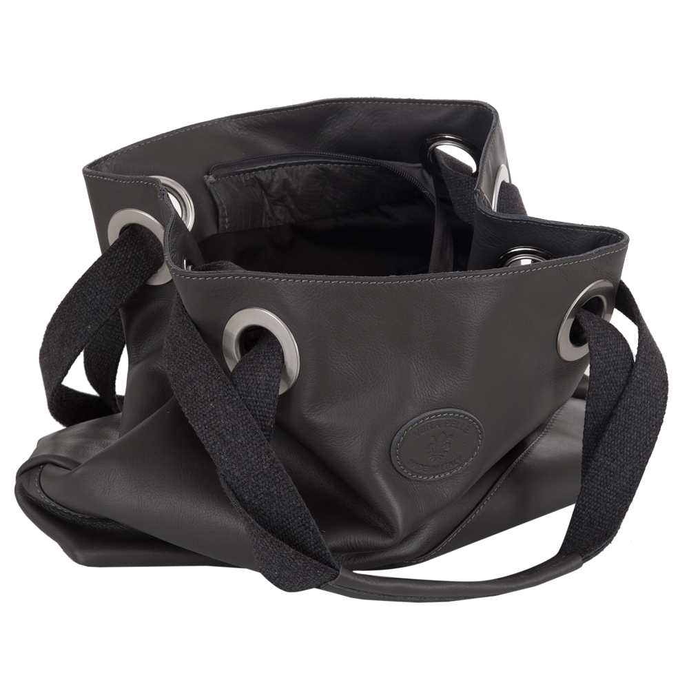 Vera Pelle - włoska XL skórzana torebka worek wykonana z wysokogatunkowej miękkiej naturalnej skóry cielęcej. Oryginalna torebka w miejskim stylu, idealna na codzień. Zamykana z góry na suwak. Torebka jednokomorowa. Wewnątrz jedna kieszonka na zamek oraz jedna na telefon. Wnętrze wykończone trwałą, czarną podszewką. Dno lekko usztywnione. Oryginalne uszy parciano-skórzane.