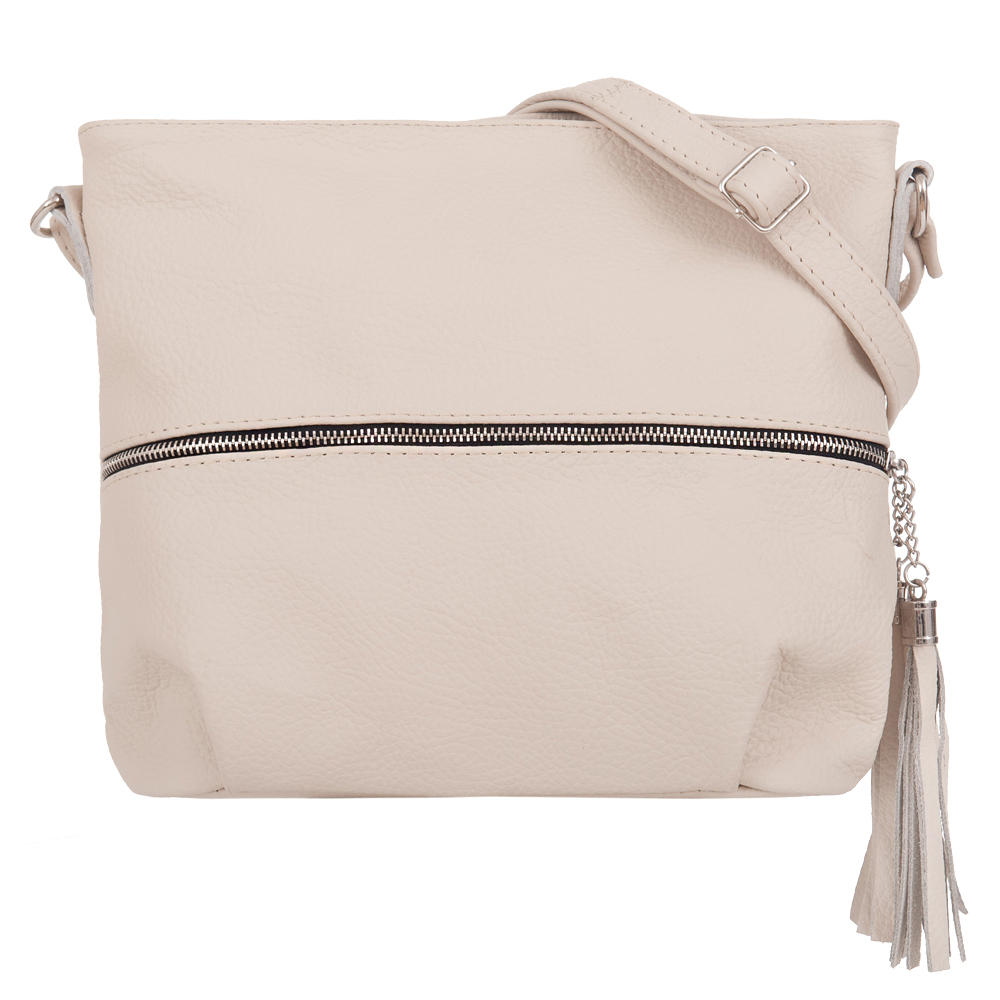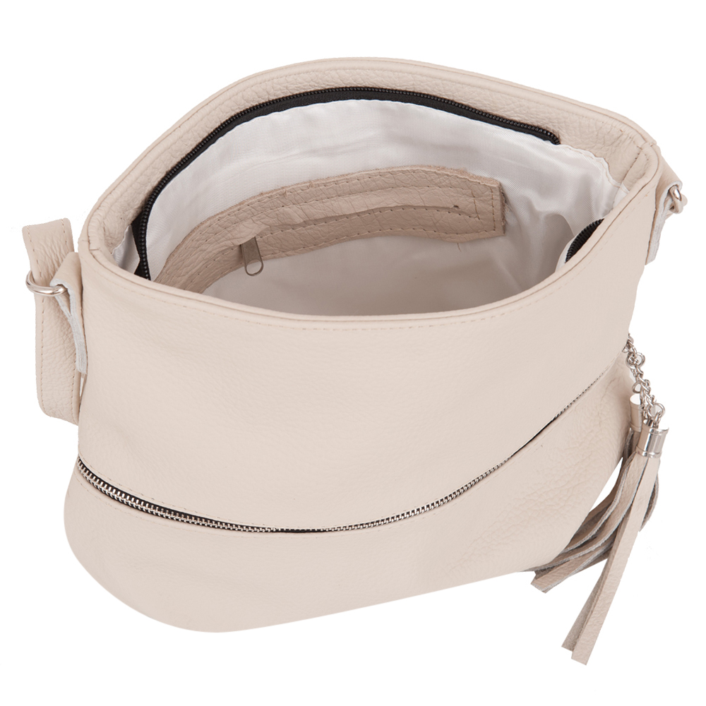 Polska skórzana torebka listonoszka wykonana z wysokogatunkowej skóry naturalnej. Zamykana od góry na zamek na całej szerokości torebki. Torebka jednokomorowa, wewnątrz jedna kieszonka na zamek + kieszonka na telefon. Wnętrze wykończone trwałą podszewką. Długi, regulowany pasek umożliwia wygodne noszenie na ramieniu lub przez ramię jako listonoszkę. Dodatkowa kieszonka z tyłu na zamek + kieszonka z przodu. Elementy wykończenia w kolorze srebrnym.