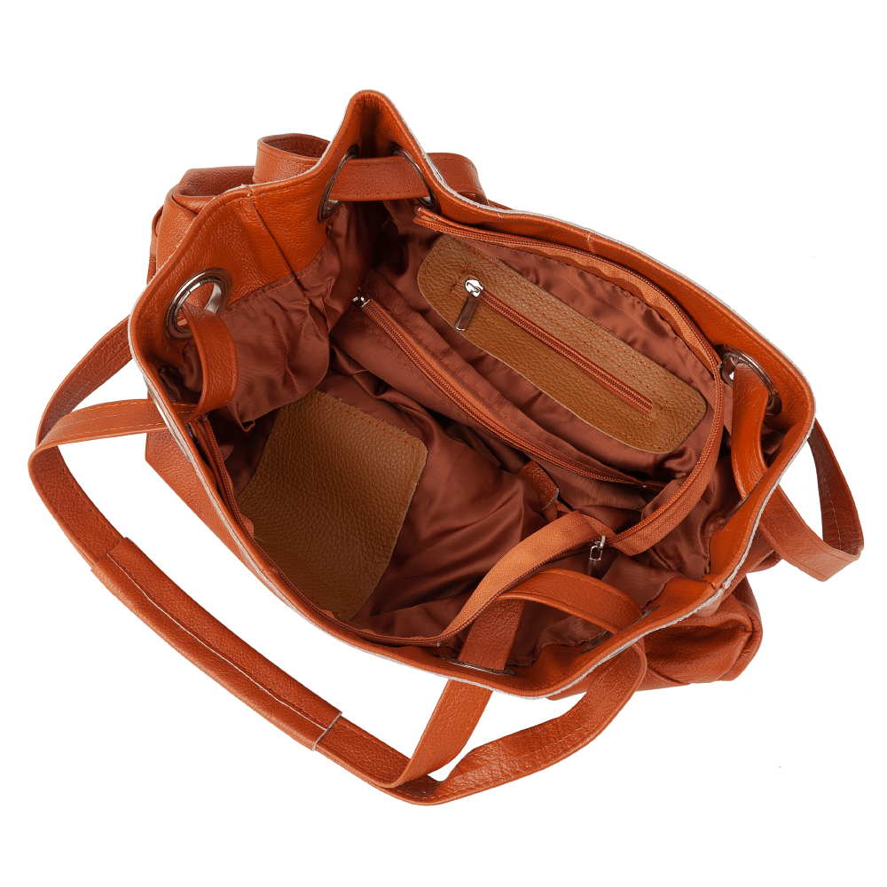 Modna skórzana torebka worek wykonana z wysokogatunkowej miękkiej włoskiej naturalnej skóry. Oryginalna torebka w miejskim stylu, idealna na codzień. Zamykana z góry na suwak. Torebka jednokomorowa. Wewnątrz jedna kieszonka na zamek oraz jedna na telefon. Wnętrze wykończone trwałą materiałową podszewką. Dno lekko usztywnione. Miękkie skórzane uszy. Metalowe elementy w kolorze srebrnym.