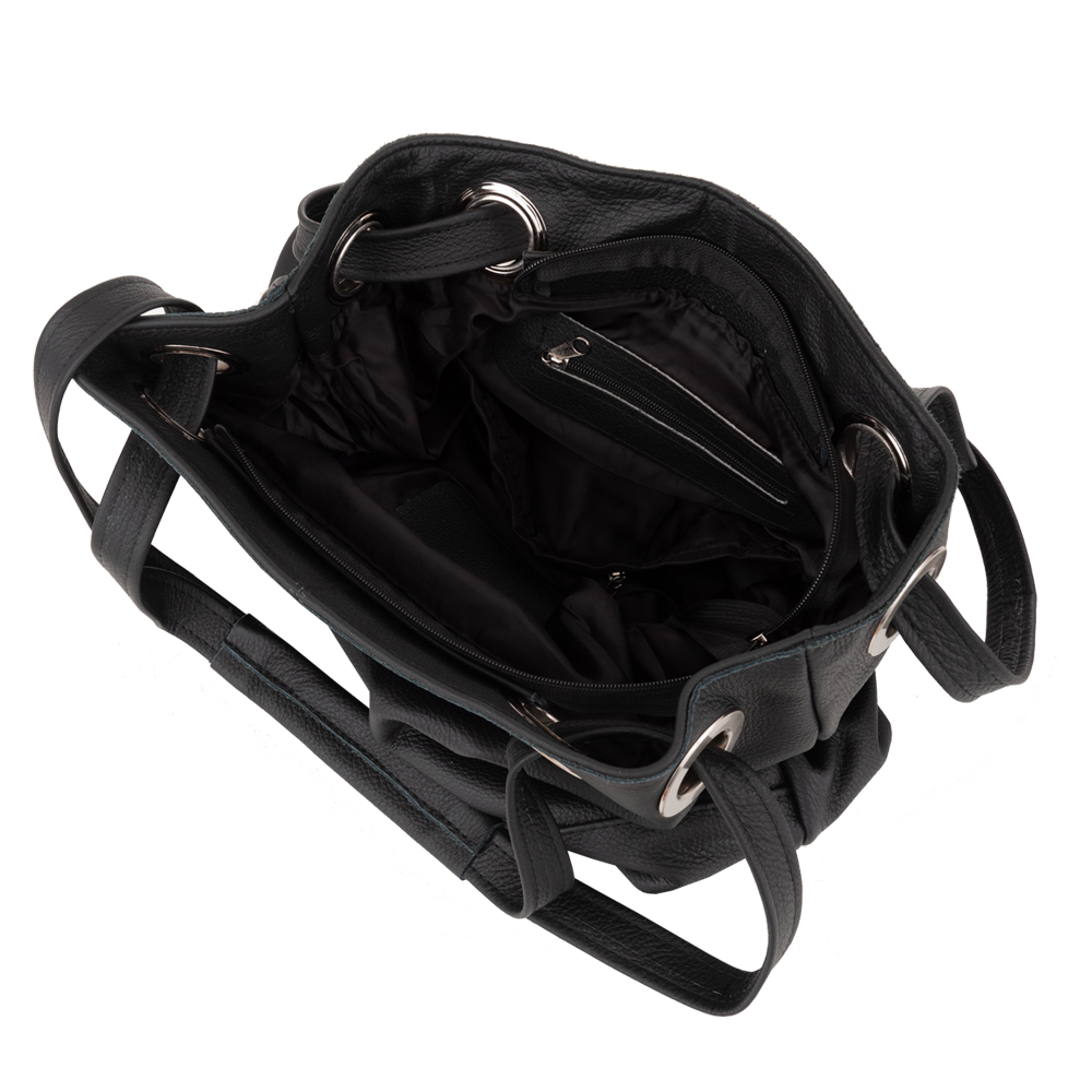 Modna skórzana torebka worek wykonana z wysokogatunkowej miękkiej włoskiej naturalnej skóry. Oryginalna torebka w miejskim stylu, idealna na codzień. Zamykana z góry na suwak. Torebka jednokomorowa. Wewnątrz jedna kieszonka na zamek oraz jedna na telefon. Wnętrze wykończone trwałą materiałową podszewką. Dno lekko usztywnione. Miękkie skórzane uszy. Metalowe elementy w kolorze srebrnym.