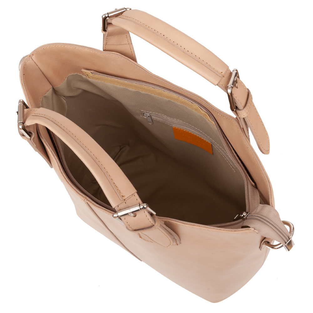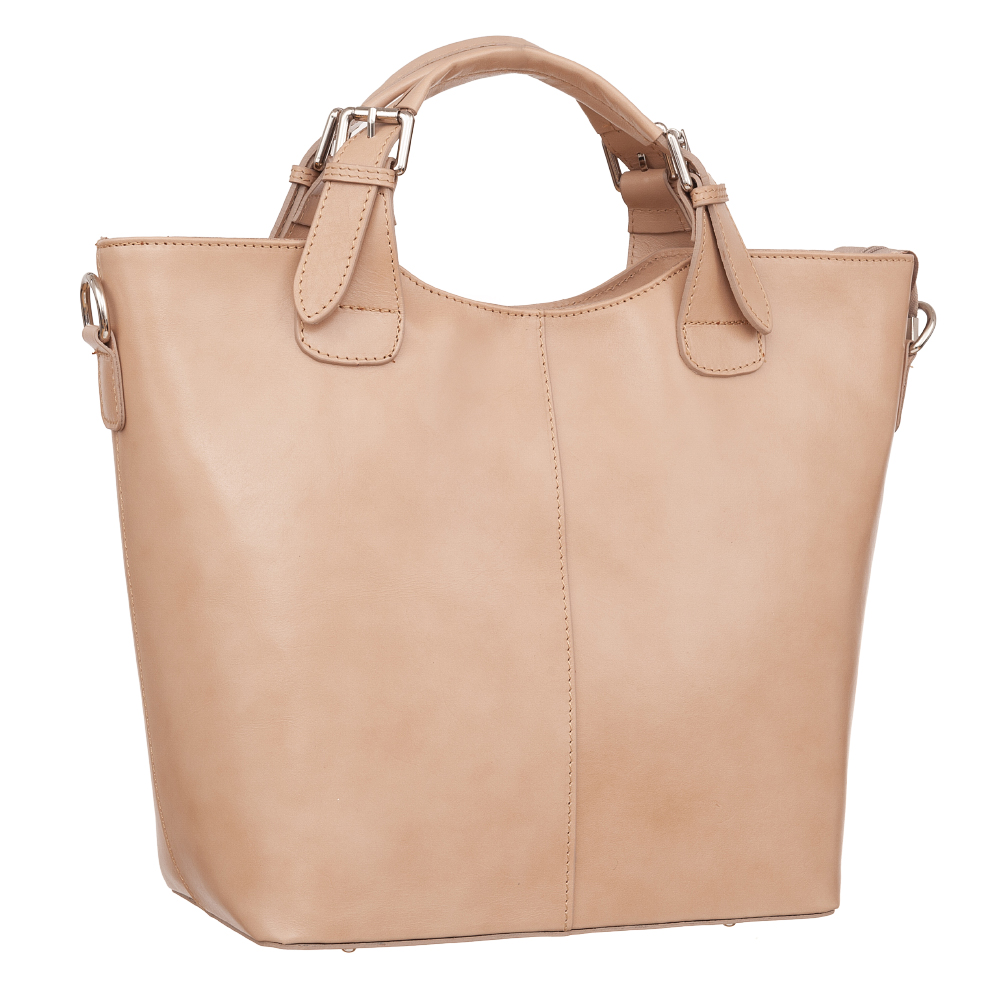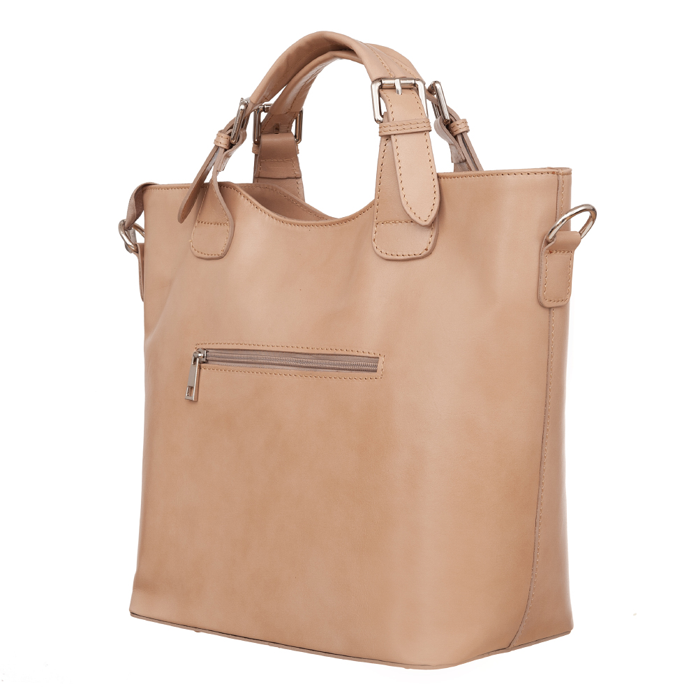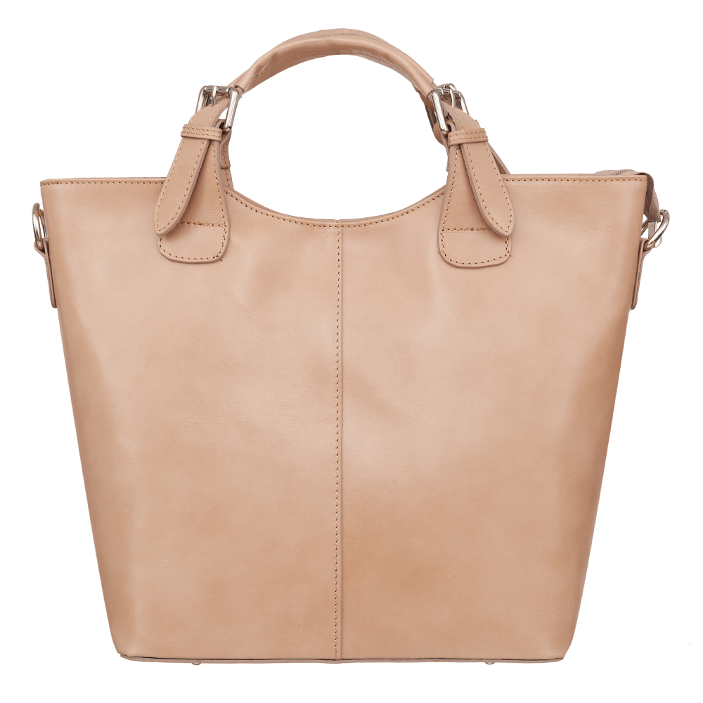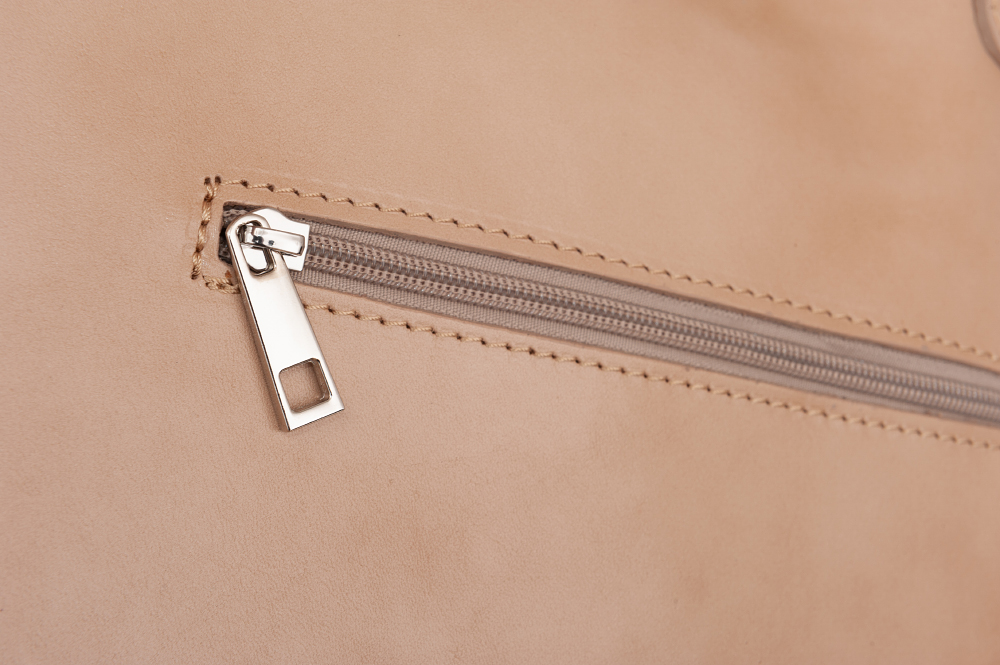 GENUINE LEATHER - MADE IN ITALY. Włoska A4 klasyczna, skórzana torebka wykonana z wysokogatunkowej naturalnej skóry licowej. Zamykana na zamek na całej szerokości, w środku mocna, czarna materiałowa podszewka. Torebka jednokomorowa, wewnątrz jedna kieszonka na zamek + dodatkowa kieszonka na telefon lub drobiazgi. Z tyłu pojemna kieszeń na zamek. Torebka od spodu usztywniona i podbita metalowymi nóżkami. Dodatkowy doczepiany pasek o długości 100 cm. Metalowe elementy wykończenia w kolorze srebrnym.